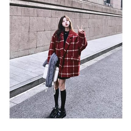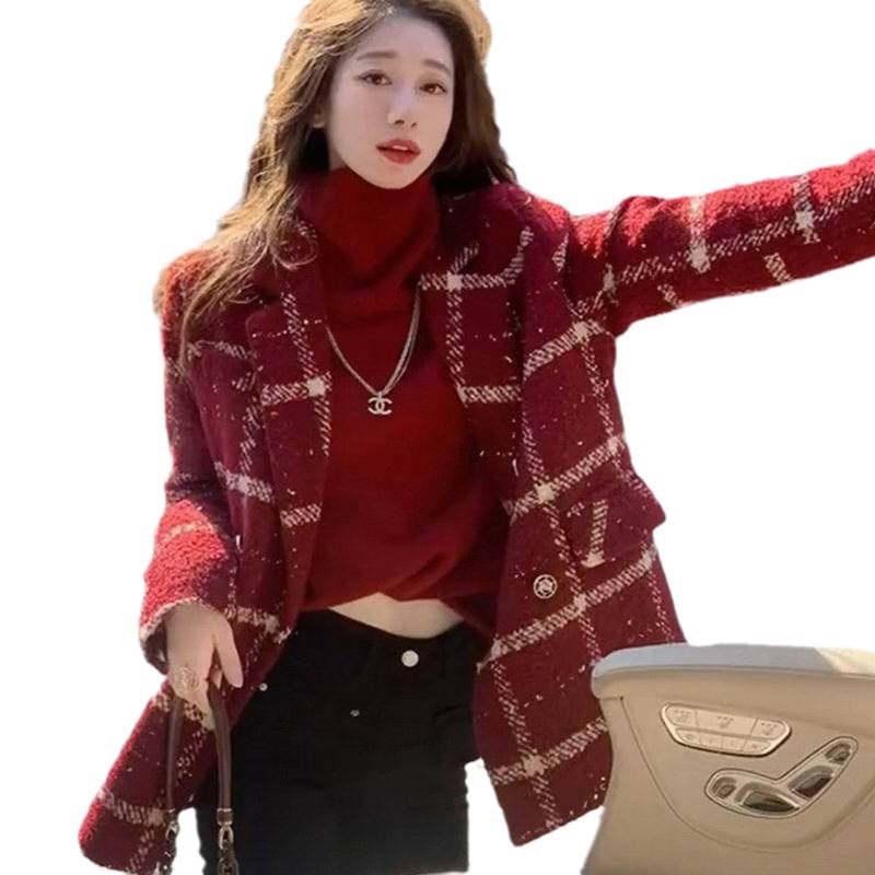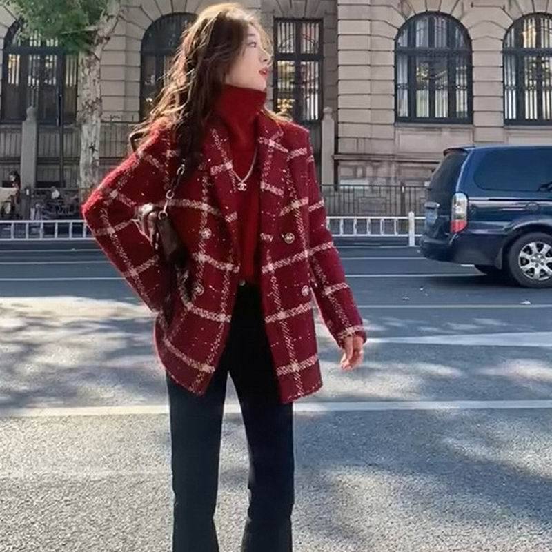 安哥拉红小香风西装毛呢外套女2025秋冬季新款小个子宽松呢子大衣