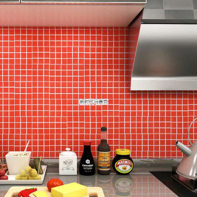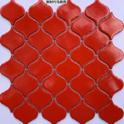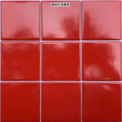 复古中国红大红色陶瓷马赛克厨房背景墙卫生间阳台网红茶餐厅瓷砖