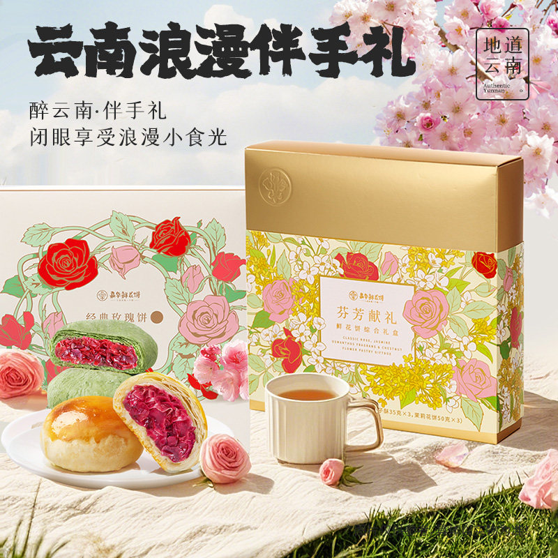 嘉华鲜花饼云南特产玫瑰花饼礼盒装多口味传统糕点心零食送礼佳品
