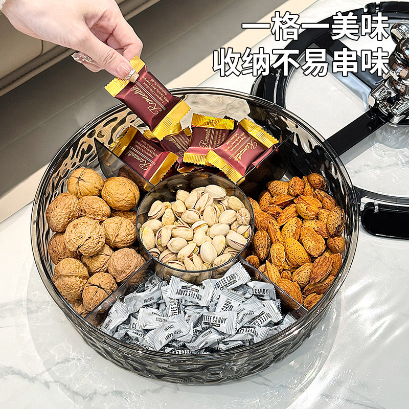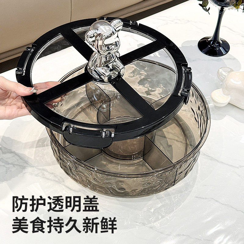 密封旋转网红果盘家用坚果瓜子收纳盒糖果盒卡扣式客厅水果干果篮