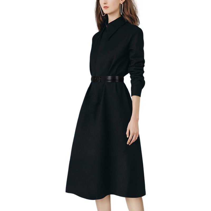小个子法式复古小黑裙连衣裙2025秋冬新款女中长款收腰显瘦衬衫裙