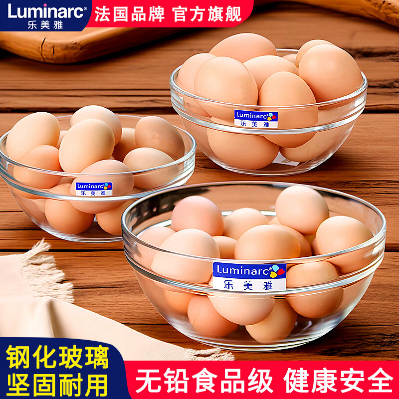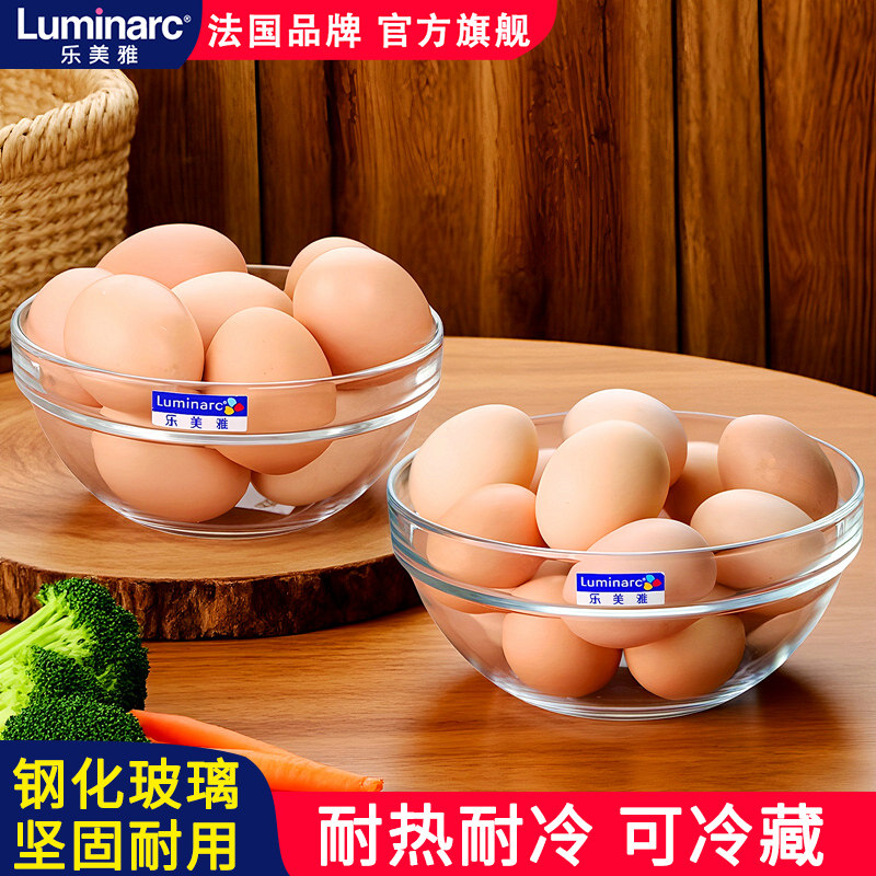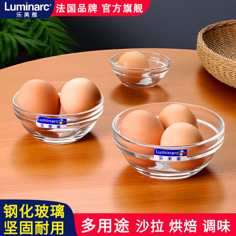 乐美雅钢化玻璃碗家用饭碗水果沙拉碗套装耐高温汤面碗微波炉专用