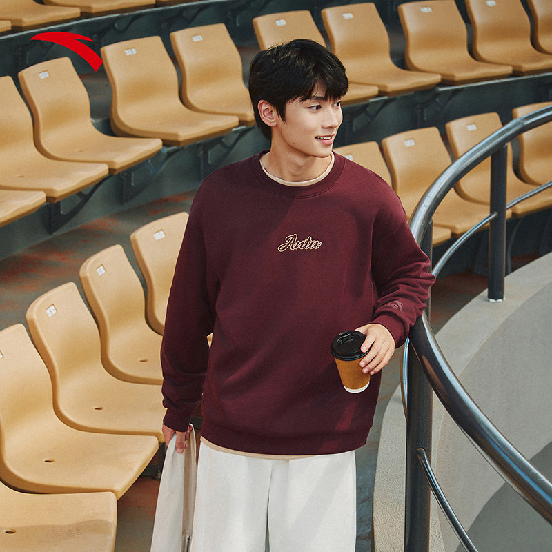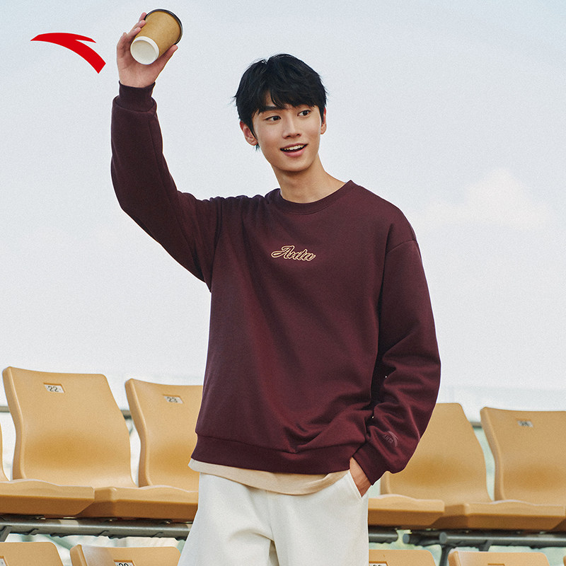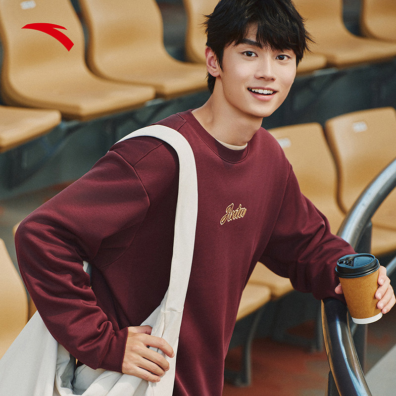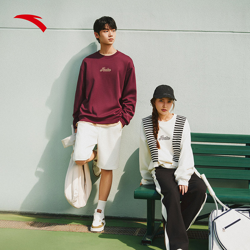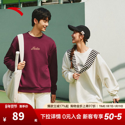 安踏加绒卫衣男女同款2025秋冬新款内搭情侣潮流休闲运动套头上衣