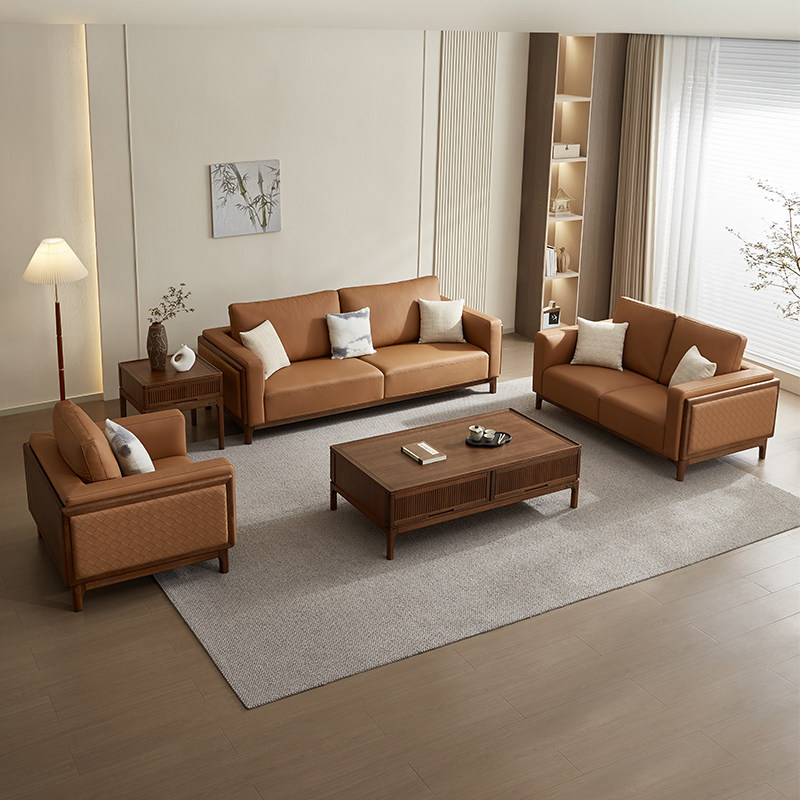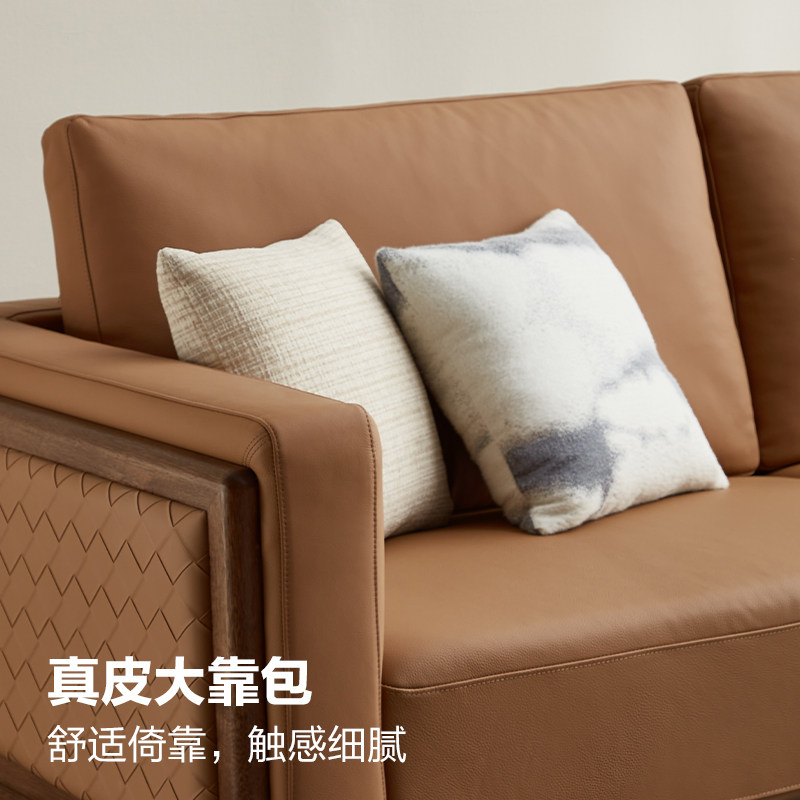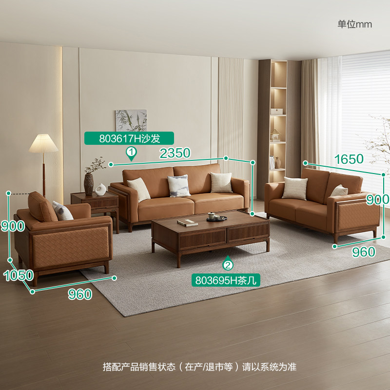 全友家居 门店同款 森林木语Ⅱ 803617H 实木真皮皮艺沙发1+2+3