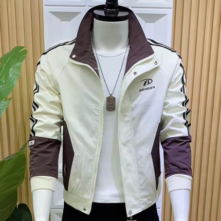 秋季外套男拼色韩版潮流新款男士夹克立领帅气炸街修身网红上衣