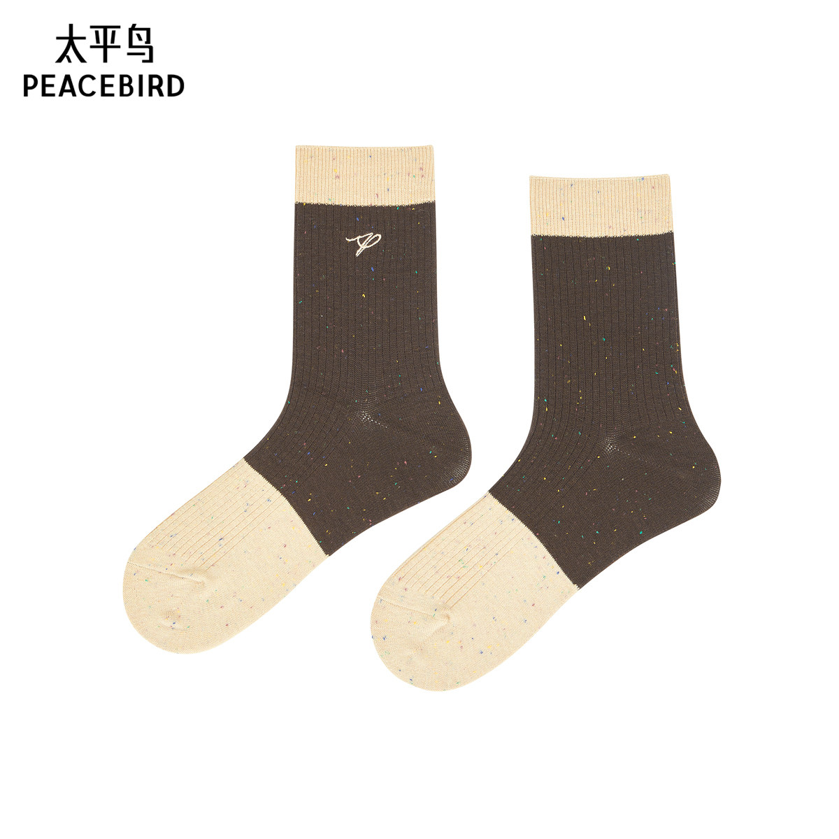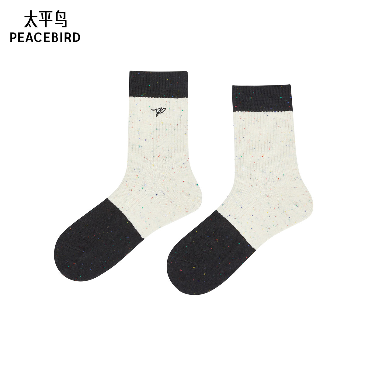 【商场同款】太平鸟时尚25年冬装新款撞色袜子女中筒A1YGF4182