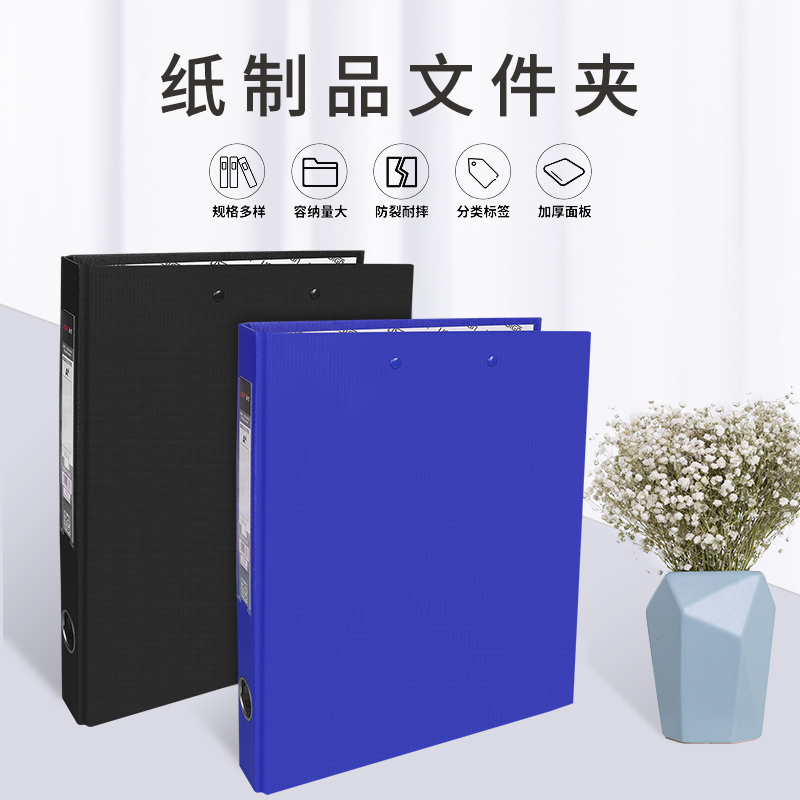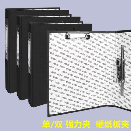 纸质文件夹板a4硬纸板单弹力夹活页夹资料弹簧打孔夹双强力夹子黑色办公长压夹单夹文件夹2孔快劳夹