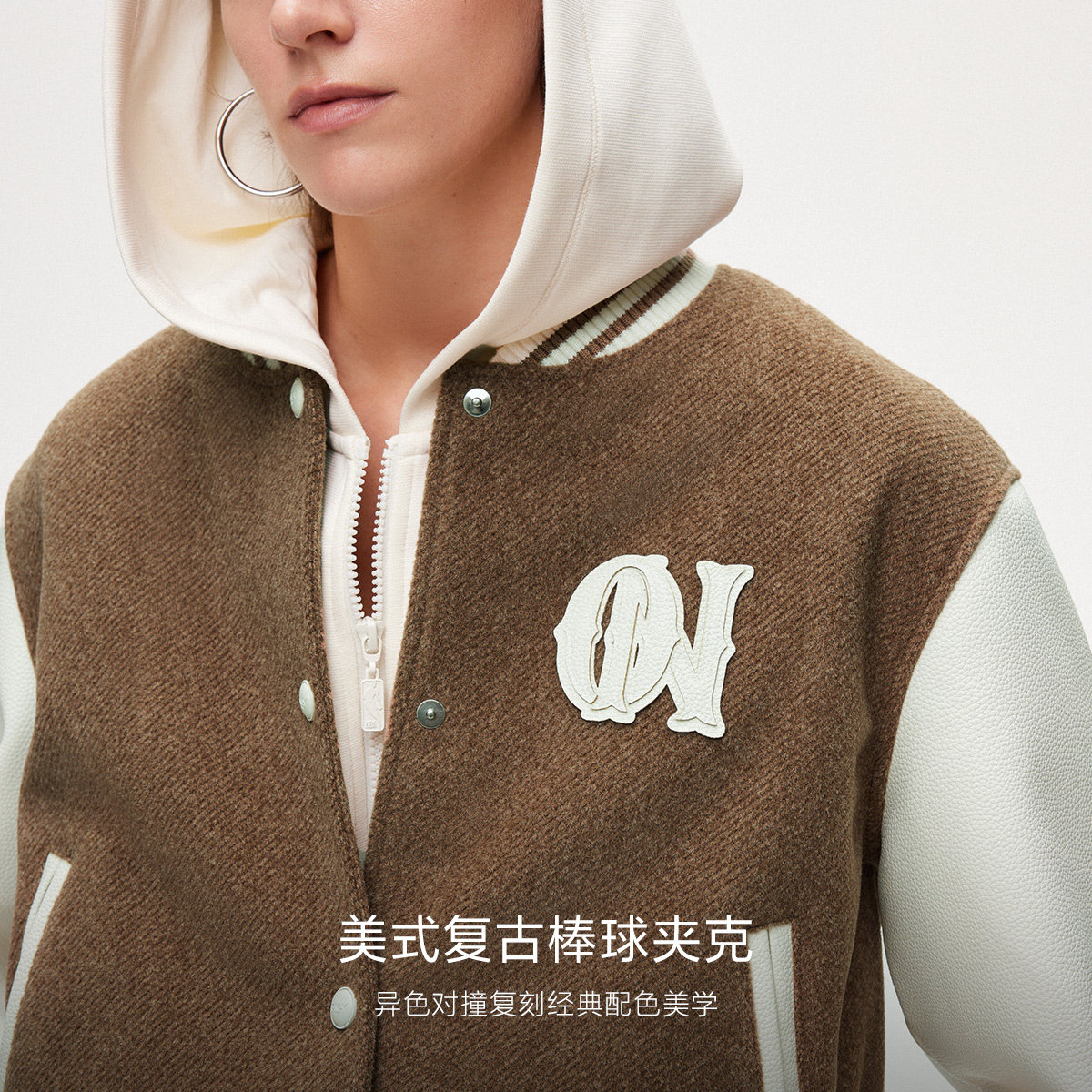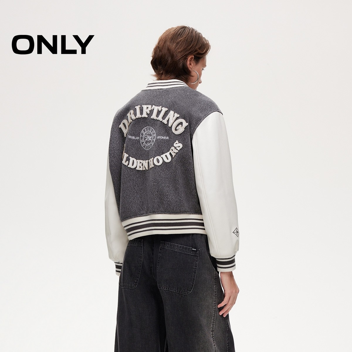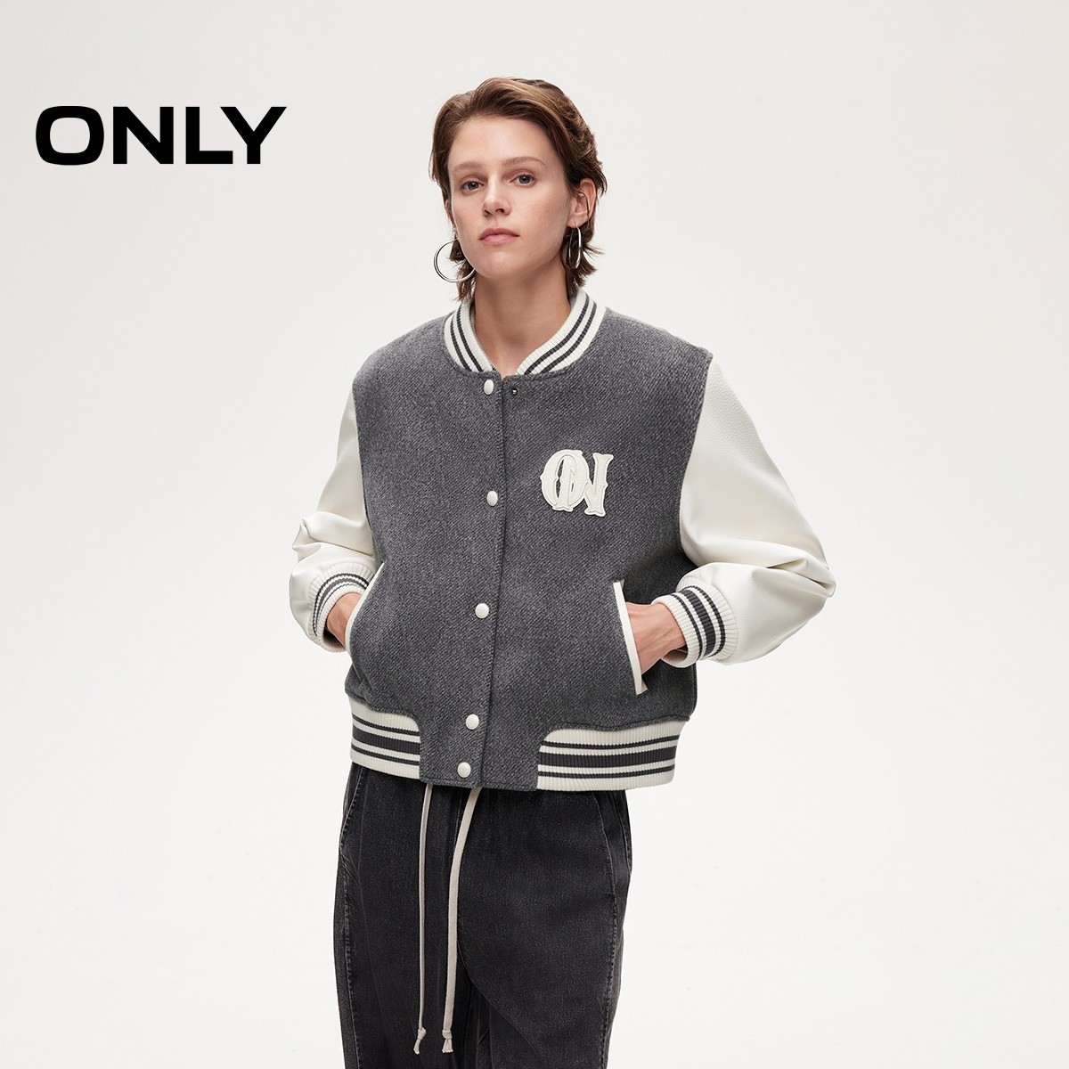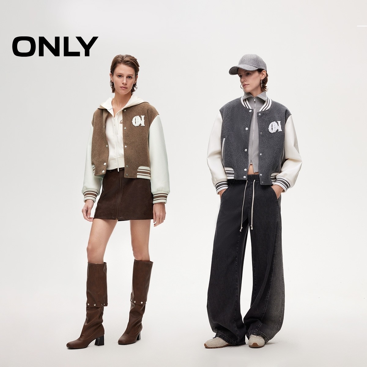 ONLY2025秋季新款撞色棒球夹克显高短款罗纹针织棉服女|125422008