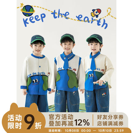 幼悠男童2025秋季新款长袖纯棉衬衫叠穿马甲直筒牛仔裤系列套装潮
