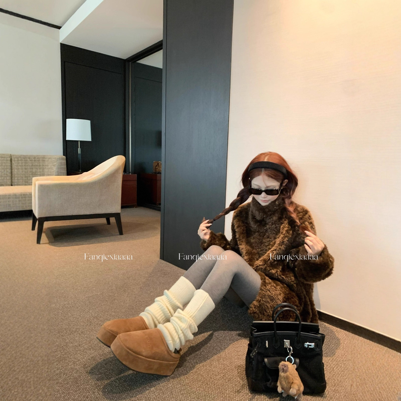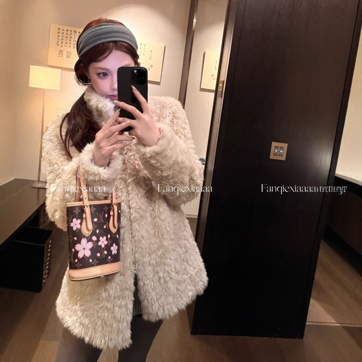 富人区4.0 款皮毛一体外套女立领中长款休闲风保暖仿皮草毛毛外套