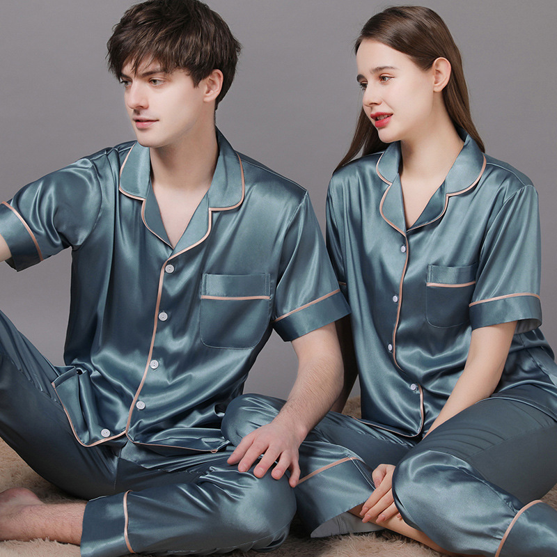 桑蚕丝春秋情侣睡衣真丝绸男女士家居服大码短袖长裤高档夏季套装
