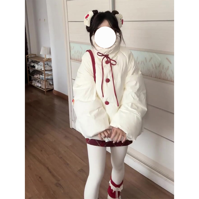 大码设计感白撞红羽绒棉服女2025冬季新款防寒保暖小个子短款外套