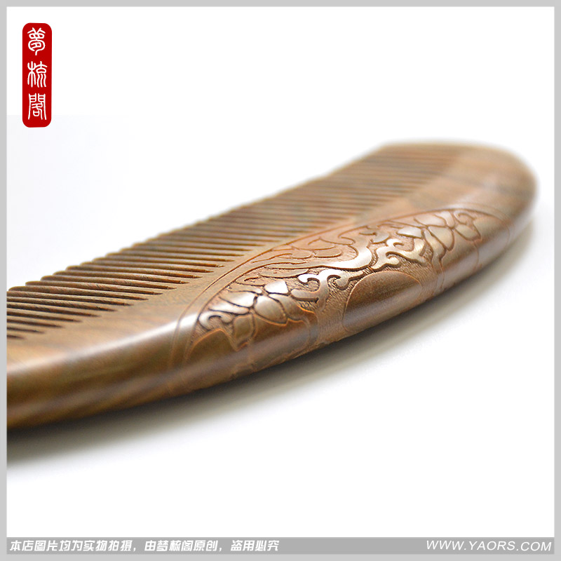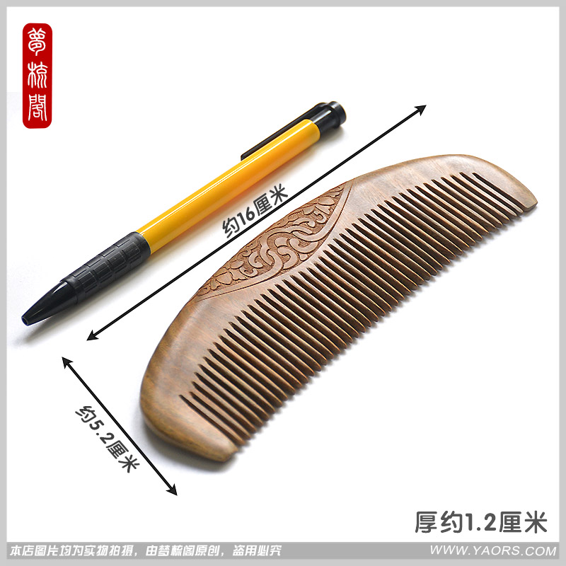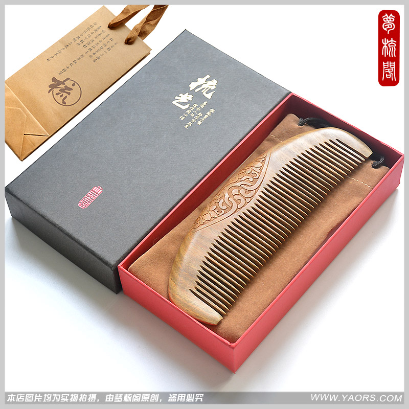 正品天然16厘米绿檀木梳子木梳女檀香木梳按摩脱发防静电免费刻字