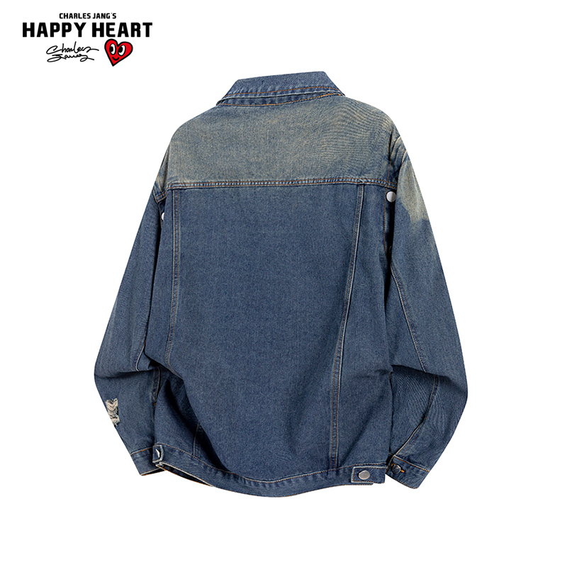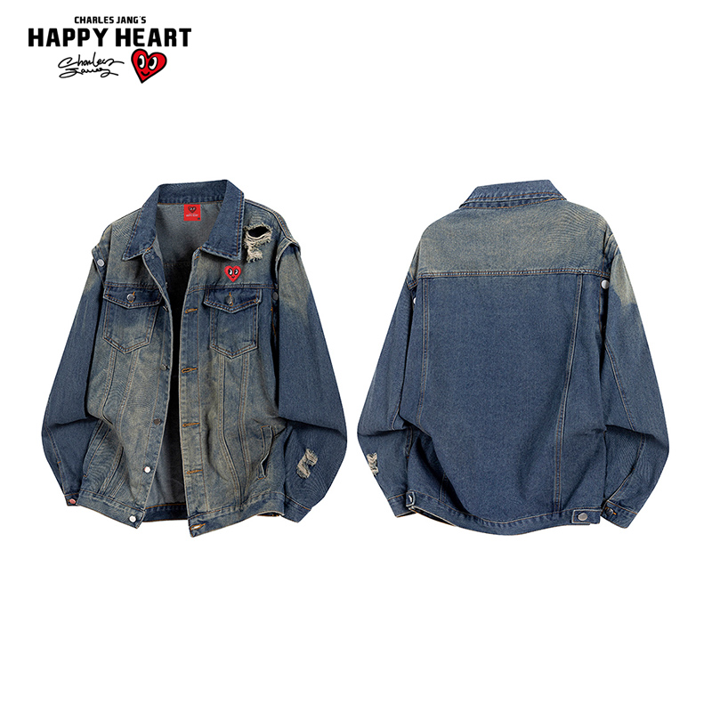 查尔斯桃心 美式复古破洞牛仔夹克男女2025年春秋季痞帅水洗外套