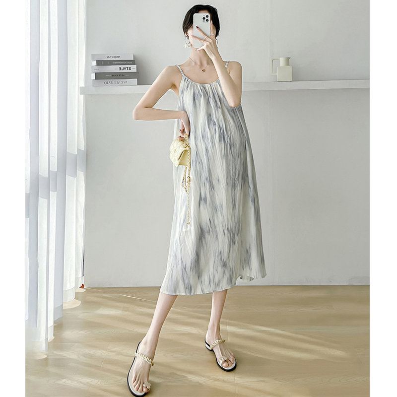 孕妇夏装连衣裙高级感花色吊带裙开衫两件套甜P美气质雪纺裙子套