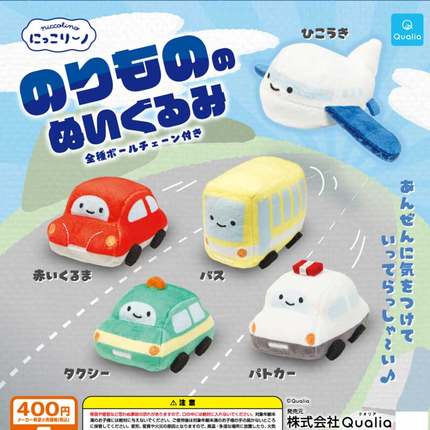 现货日本Qualia 微笑交通工具玩偶 飞机巴士汽车毛绒挂件扭蛋