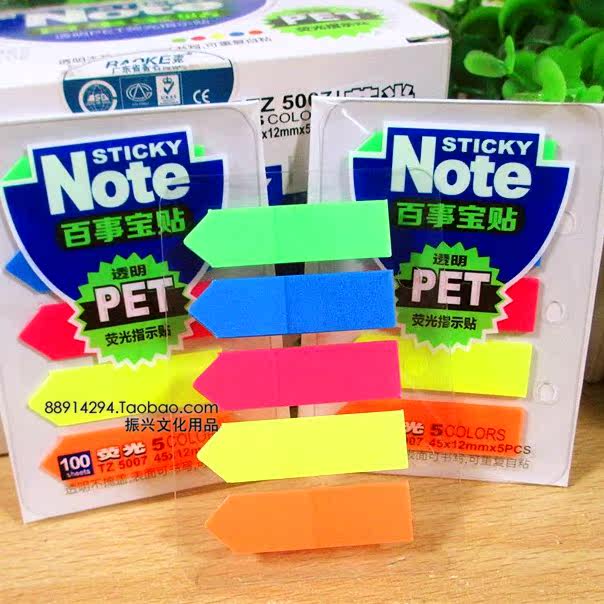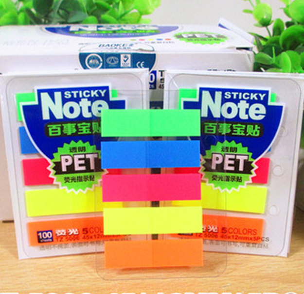 宝克TZ5007 五色半透明荧光胶提示贴便利贴 告示贴便签纸 索引贴