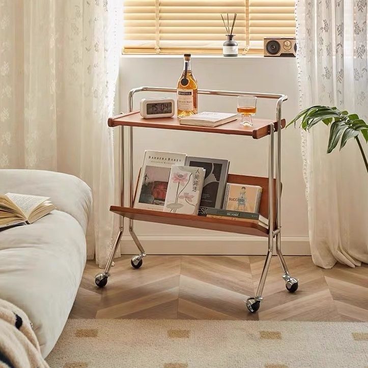 中古可移动小推车沙发边几客厅复古实木茶几杂志书架床头置物架子