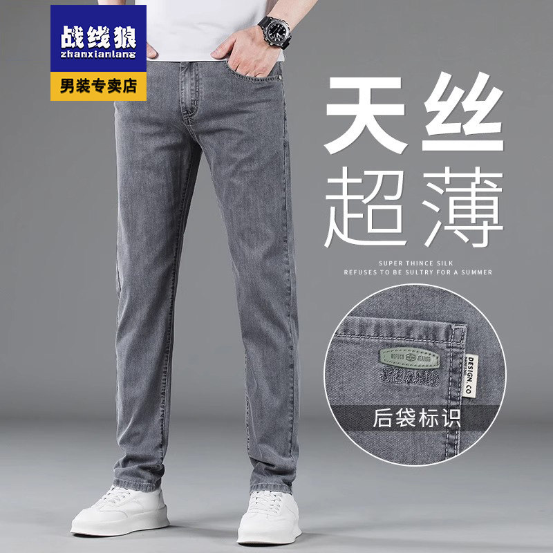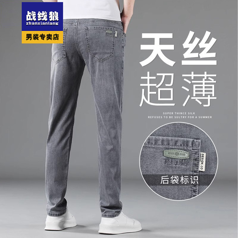 2025烟灰色牛仔裤男夏季超薄款直筒天丝男裤春秋季男士休闲长裤子