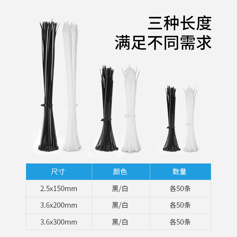 魔术贴尼龙扎带理线带按扣塑料自锁式固定收纳线材卡扣束线器强力100条3.6*300mm大号电线固定塑料捆绑线束带
