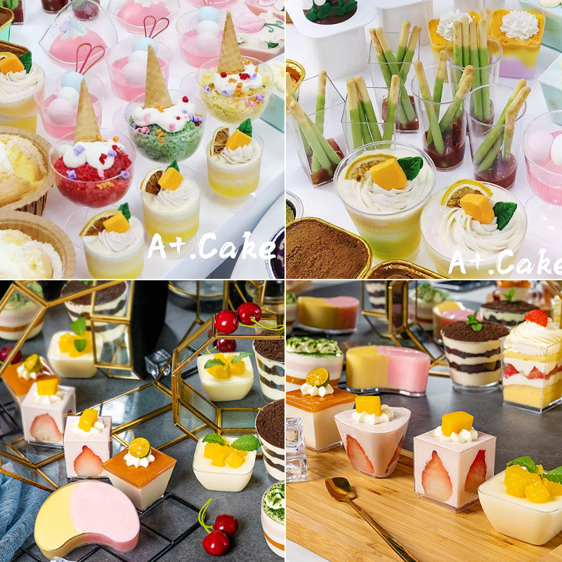 甜品台杯子高脚慕斯杯布丁杯一次性木糠杯蛋糕杯塑料杯耐高温透明