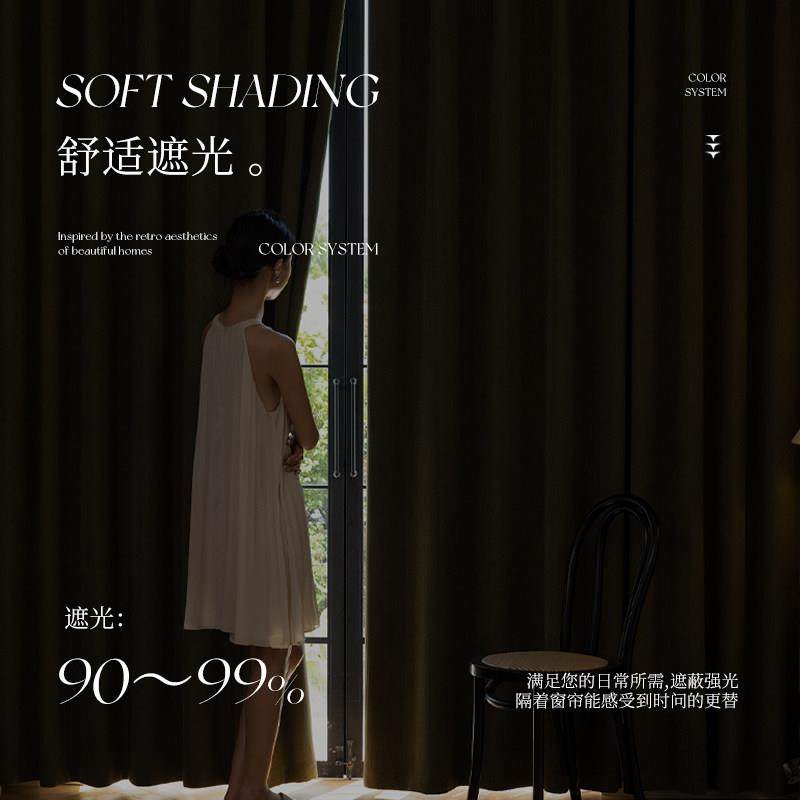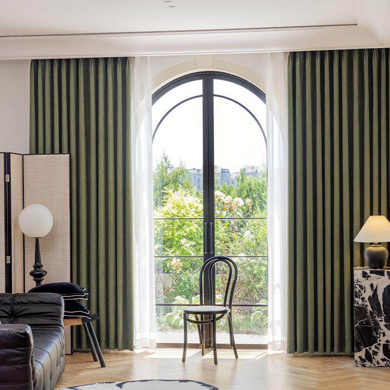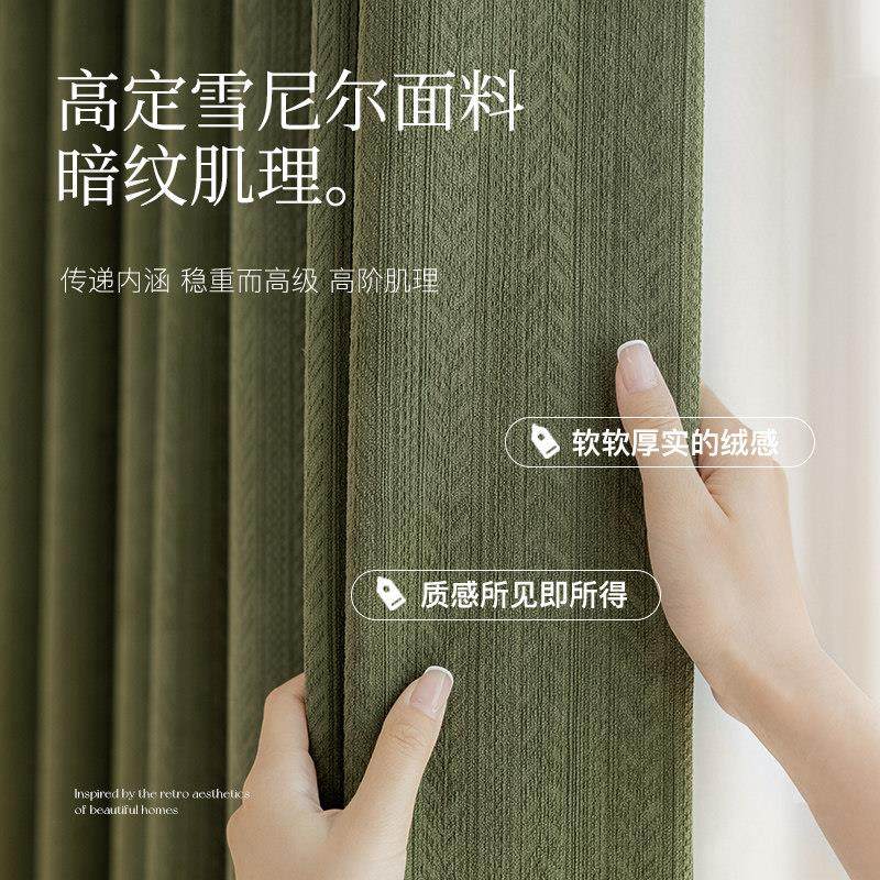 中古风复古绿窗帘雪尼尔全遮光高级感卧室轻奢客厅2024新款麦穗布