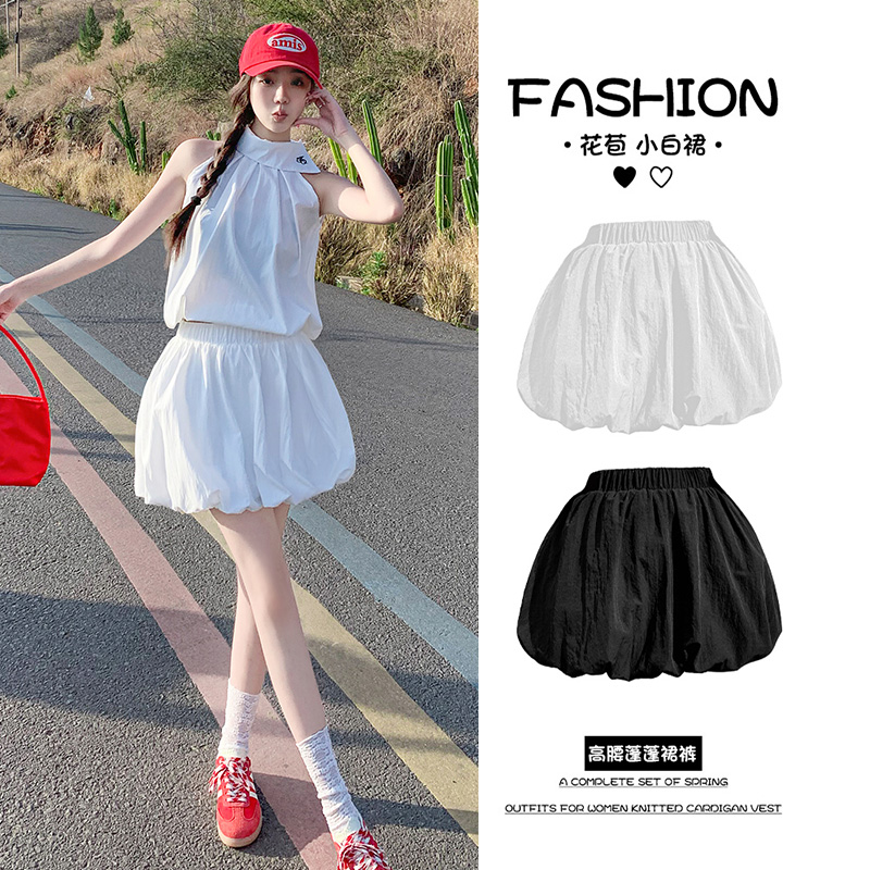 白色云朵花苞裤裙女夏季大码胖mm高腰显瘦南瓜裤a字泡泡灯笼短裤