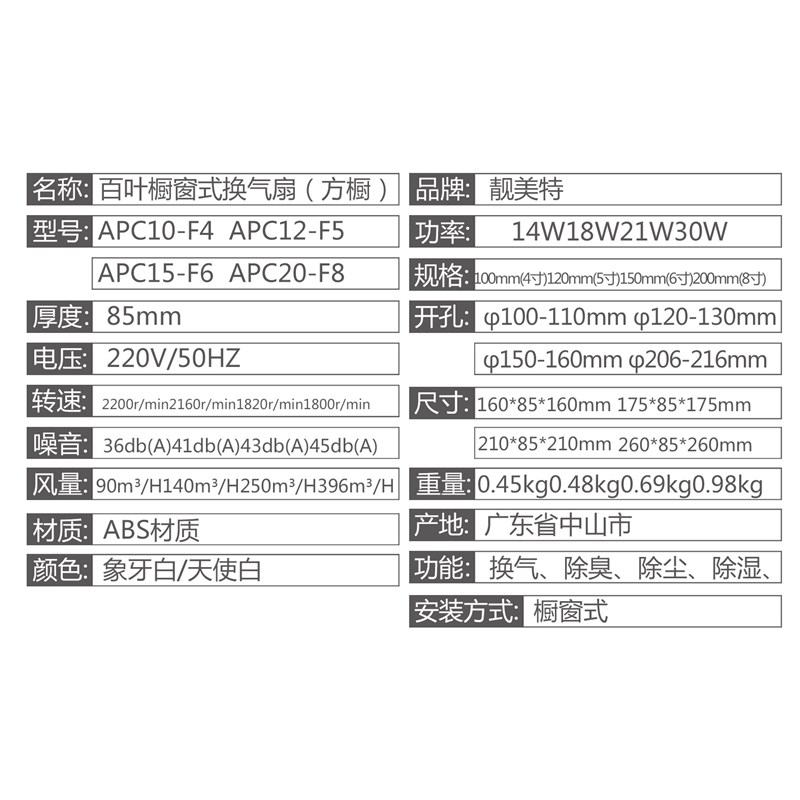 靓美特橱窗方形换排气扇玻璃安装式强力大功率厨卫生间静音招