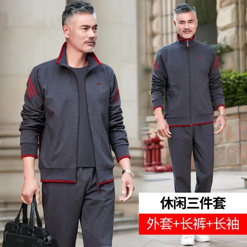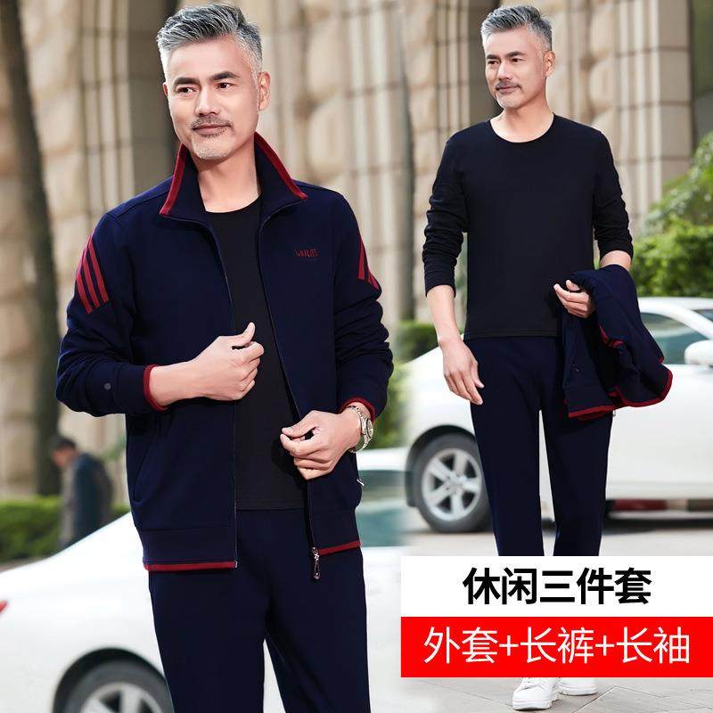 爸爸秋中老年装运动年套装男春77559759秋季大码动运服中人休闲三