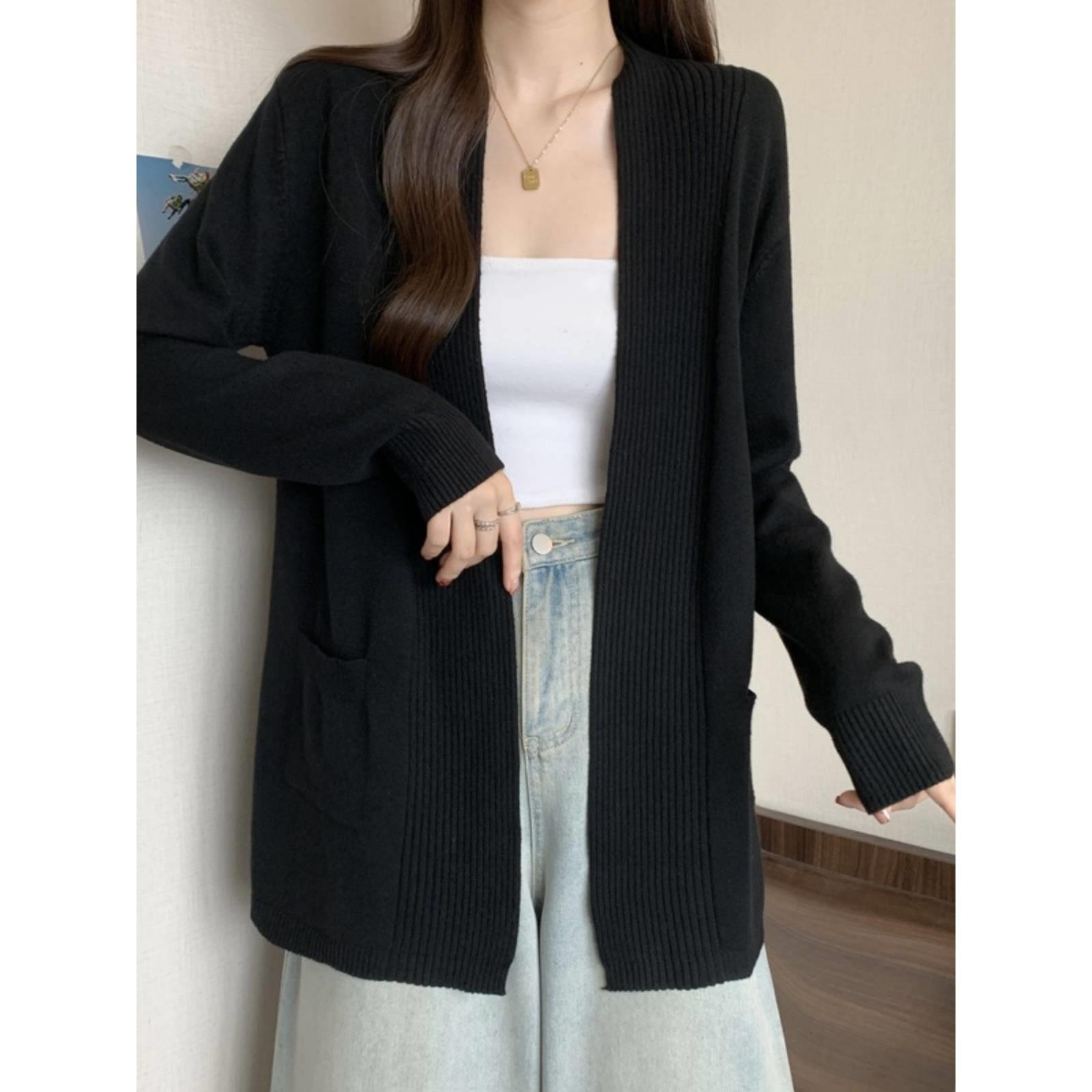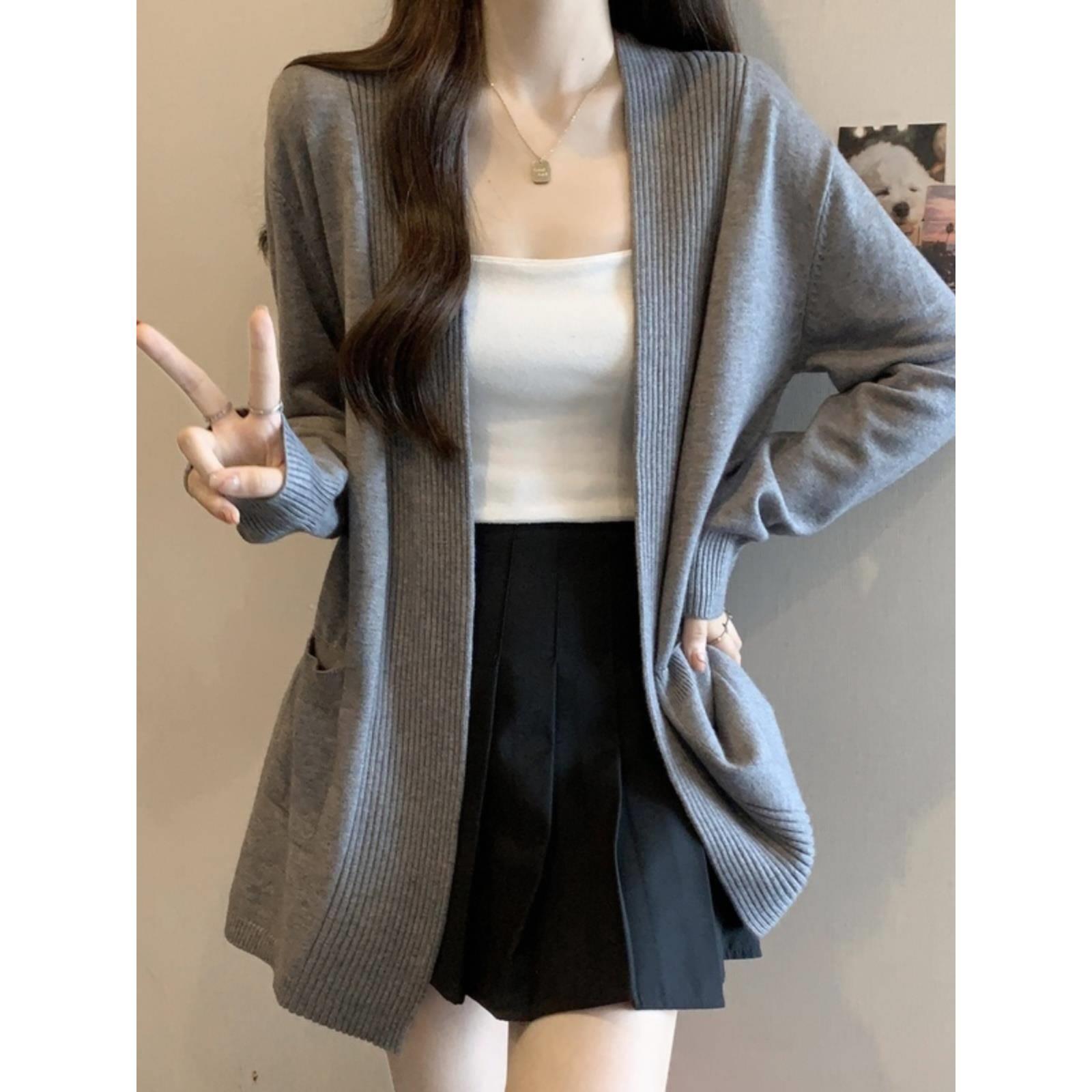 慵懒风灰色针织开衫外套女春秋冬2025新款外搭披肩中长款上衣大码