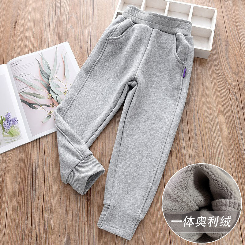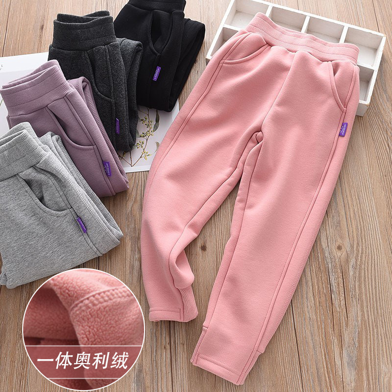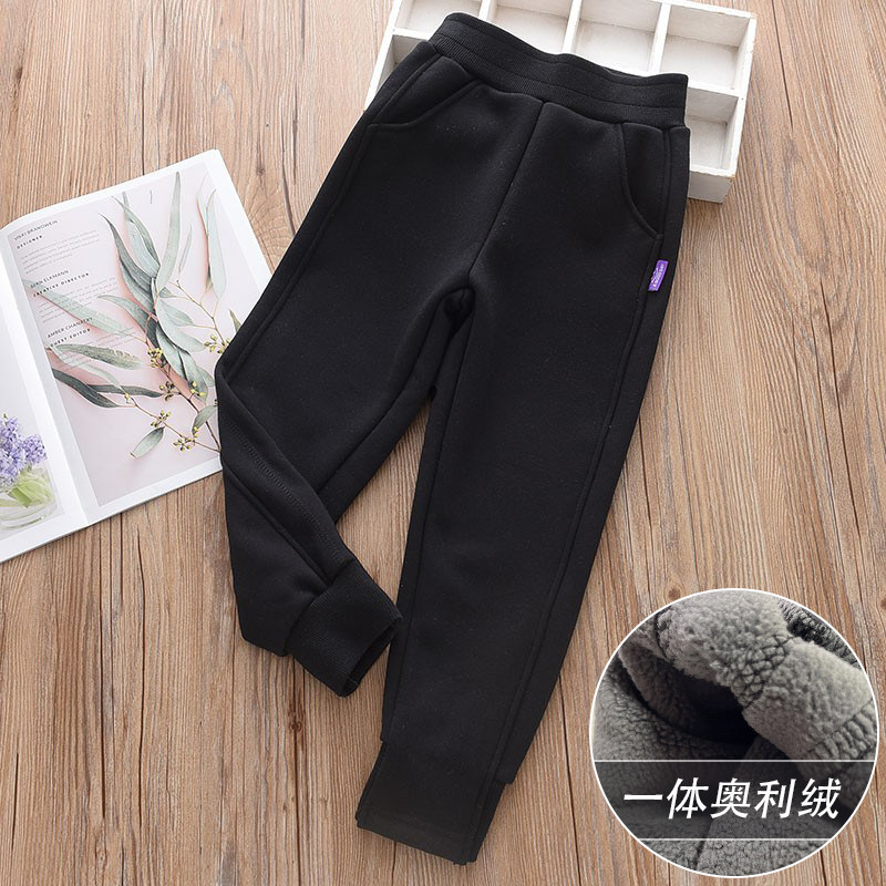 洋气男女童装秋冬款加绒加厚运动裤宝宝中大童黑色一体绒休闲卫裤