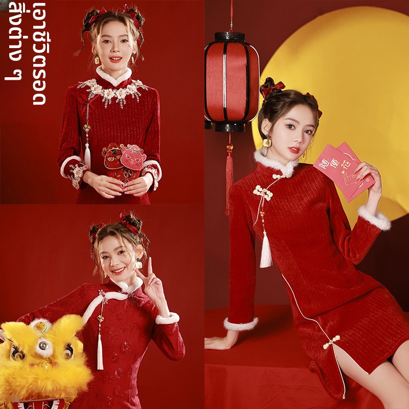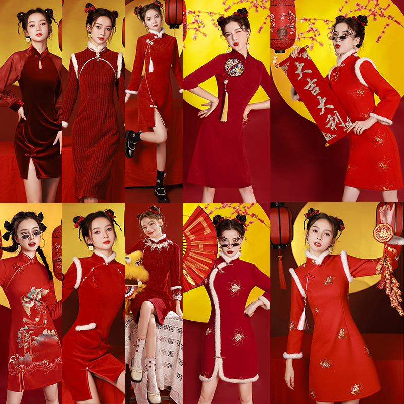 女装喜庆服服女唐装敬酒过年拜年红色战袍新款秋冬季大人新年旗袍