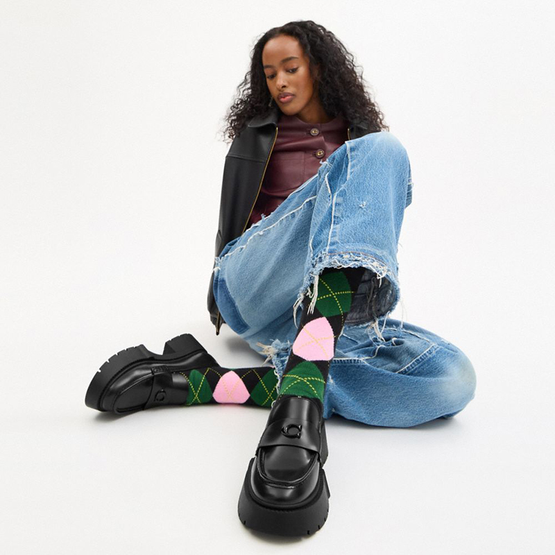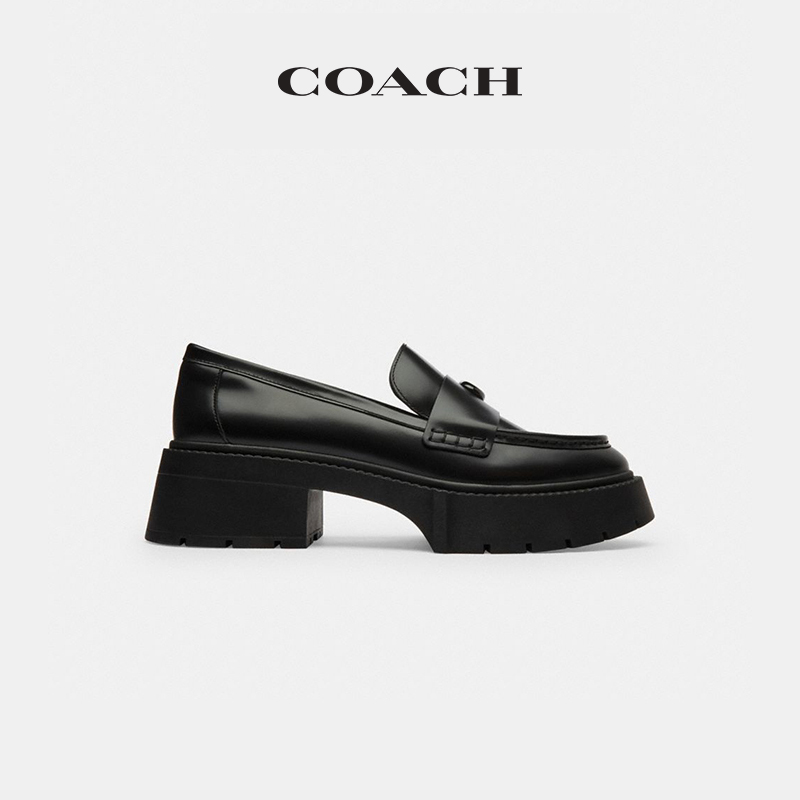 COACH/蔻驰女士LEAH厚底乐福鞋小皮鞋气质高级感粗跟舒适休闲