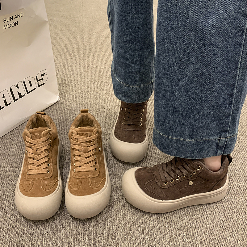 加绒高帮鞋女款2025冬季新款厚底休闲运动板鞋轻便德训鞋保暖棉鞋