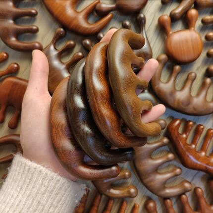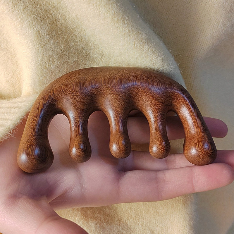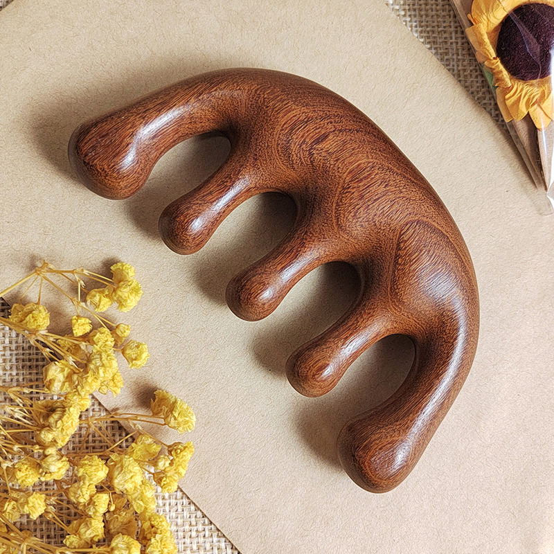 按摩梳檀木头部经络梳子头疗按摩男女刮痧眼肩颈头皮球头五齿加厚