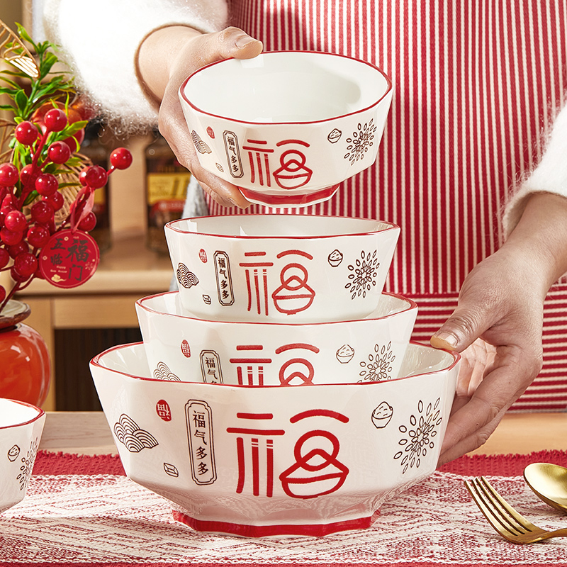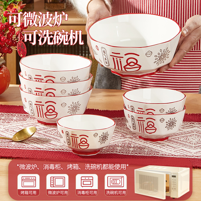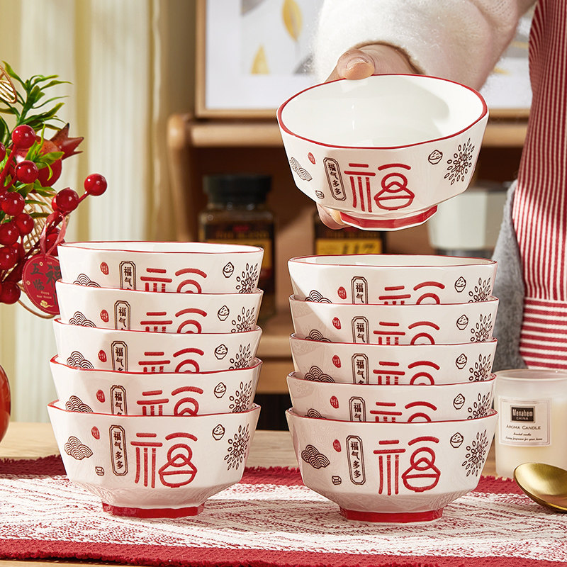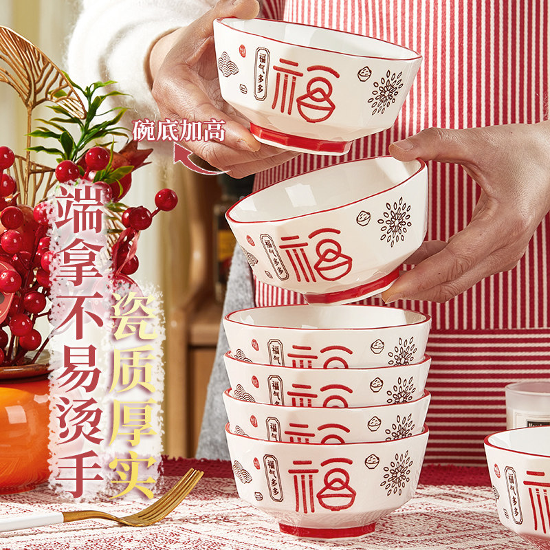 陶瓷碗家用新款2025中式餐具轻奢饭碗结婚新家乔迁新居碗碟盘套装