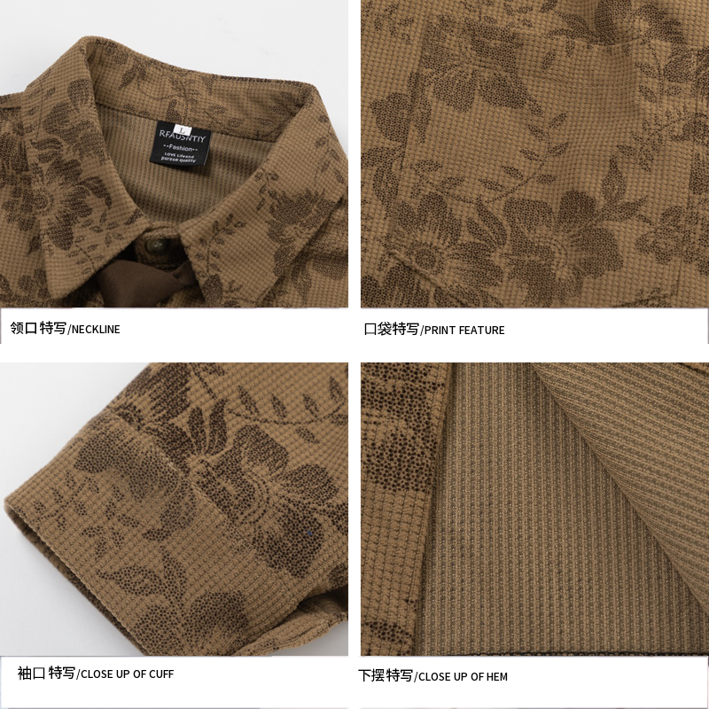 HTTAOSUP古典碎花灯芯绒长袖花衬衫外套港风复古日系男女痞帅春季