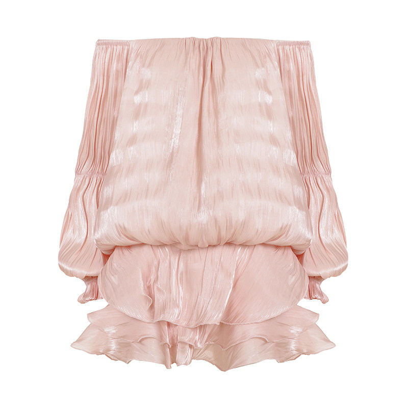 MSYOUCAN 浪漫度假风一字肩花苞连衣裙性感低腰褶皱料超短仙女裙