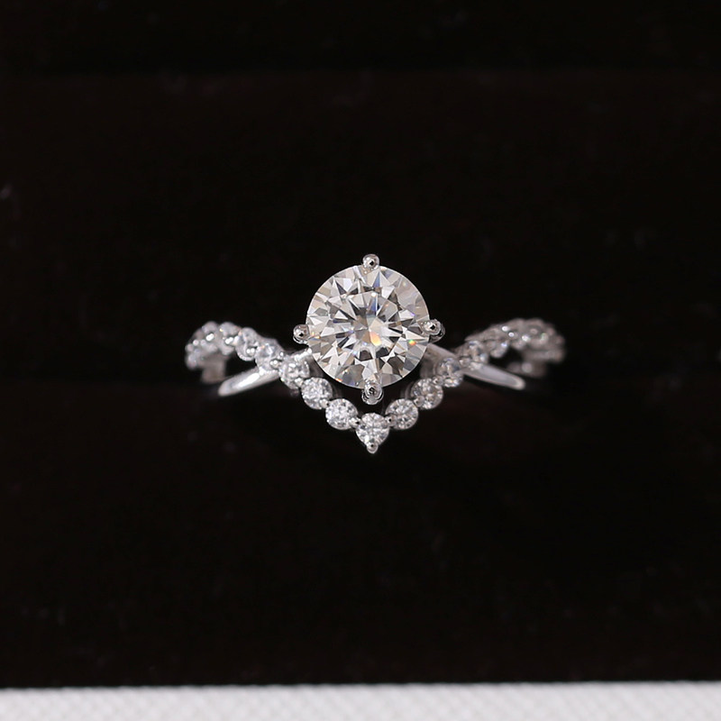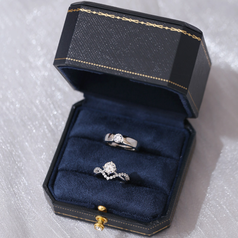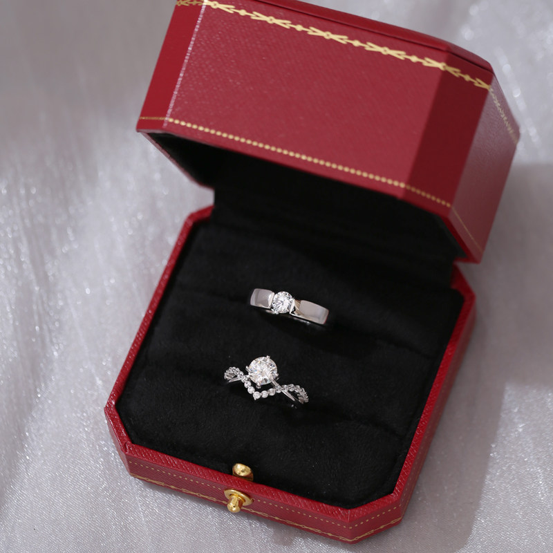 一克拉皇冠V仿真钻戒四爪戒指活口可调节订结婚对戒婚礼仪式道具