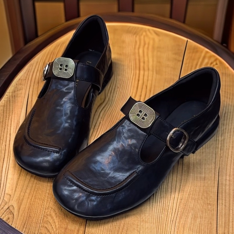 欧洲站鞋子女秋季新款真皮复古圆头女单鞋舒适百搭船鞋搭配牛仔裤
