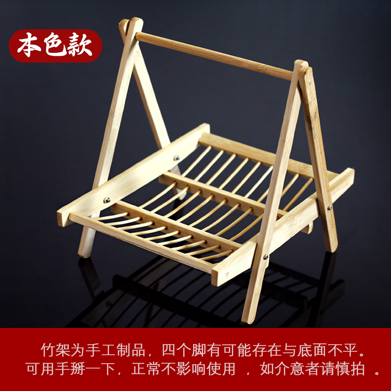 竹编晾架竹架羊肉架凉干炸物点心菜竹折叠篮火锅上菜竹木吊架果盘