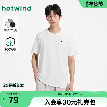 热风白色短袖T恤男2026年春季新款男士字母圆领短T基础百搭宽松T