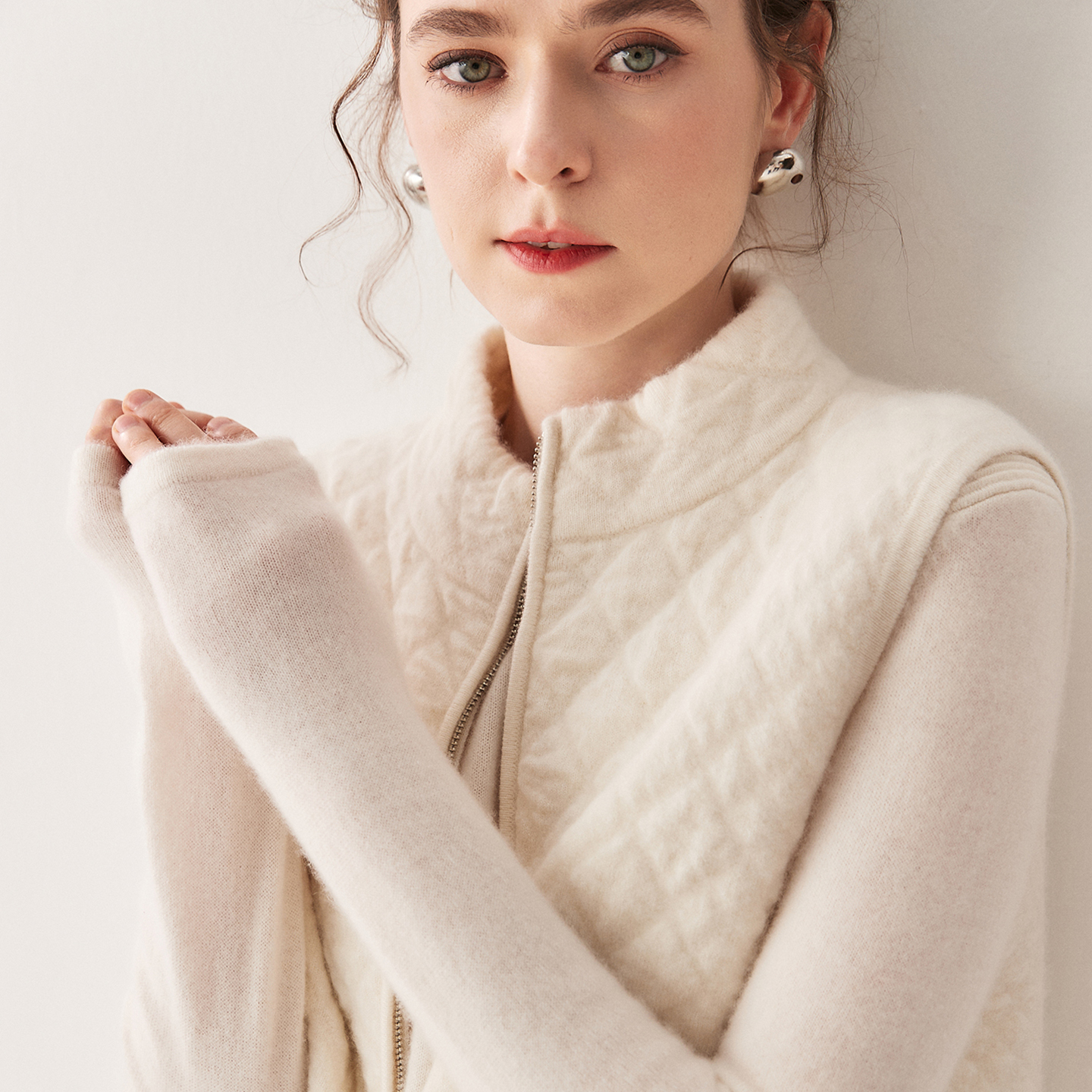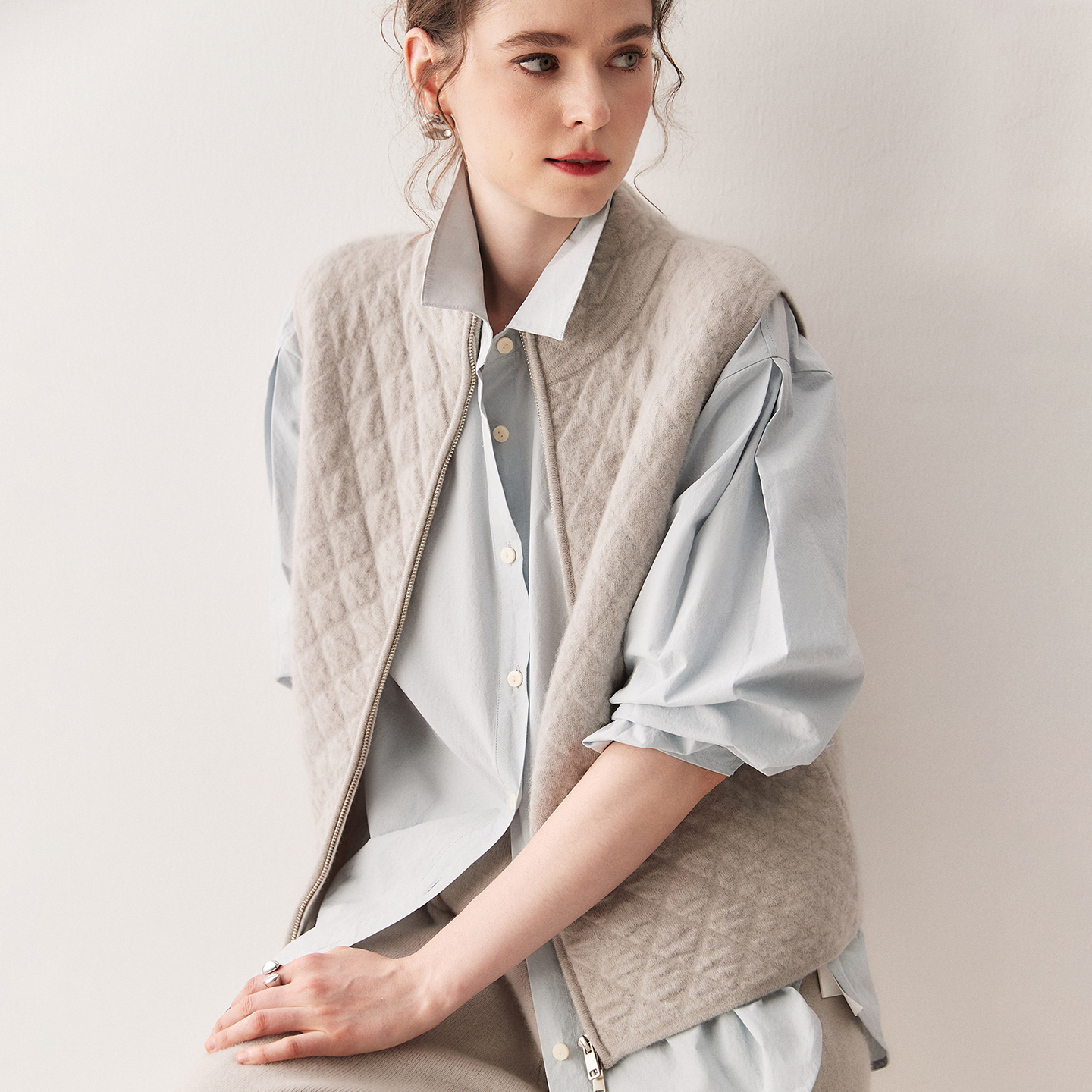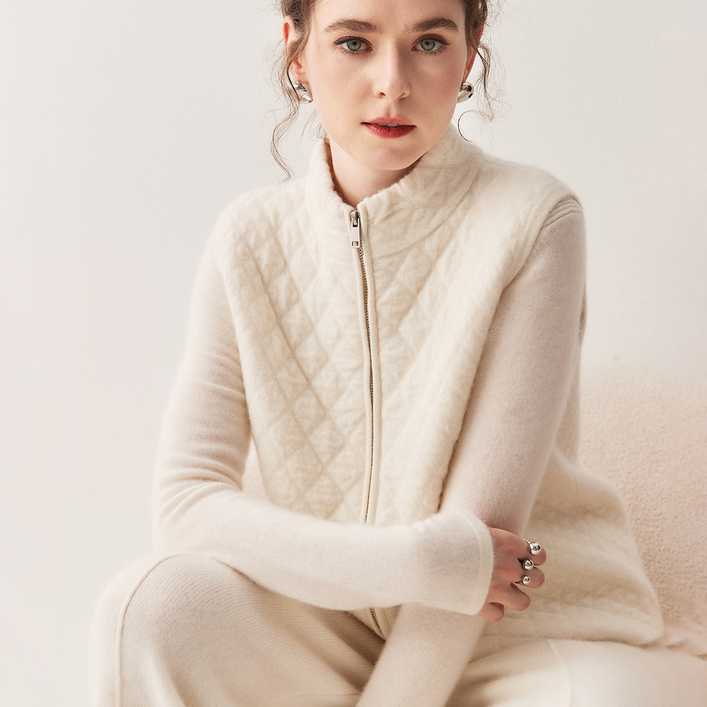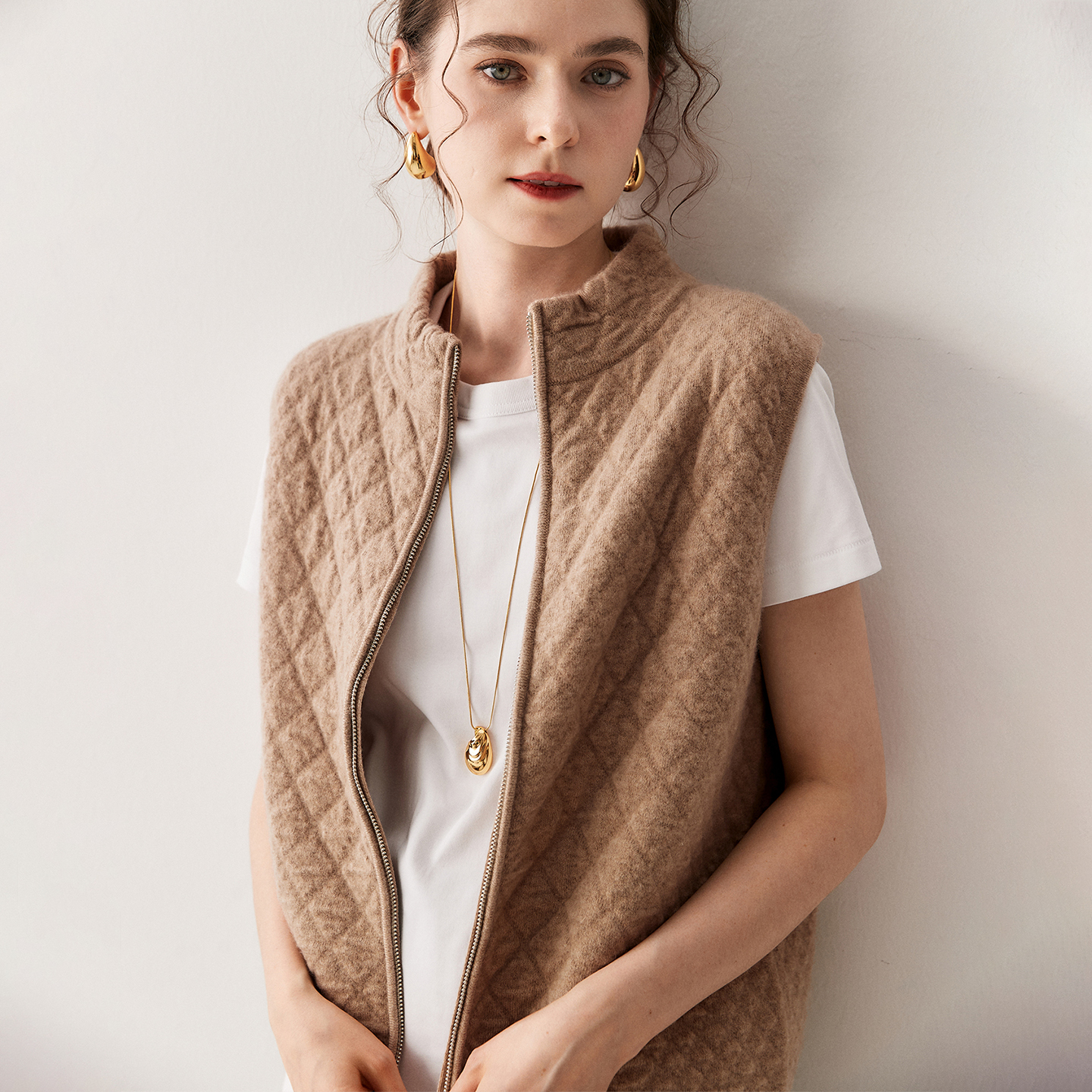 肌理感100%山羊绒拉链马甲背心女