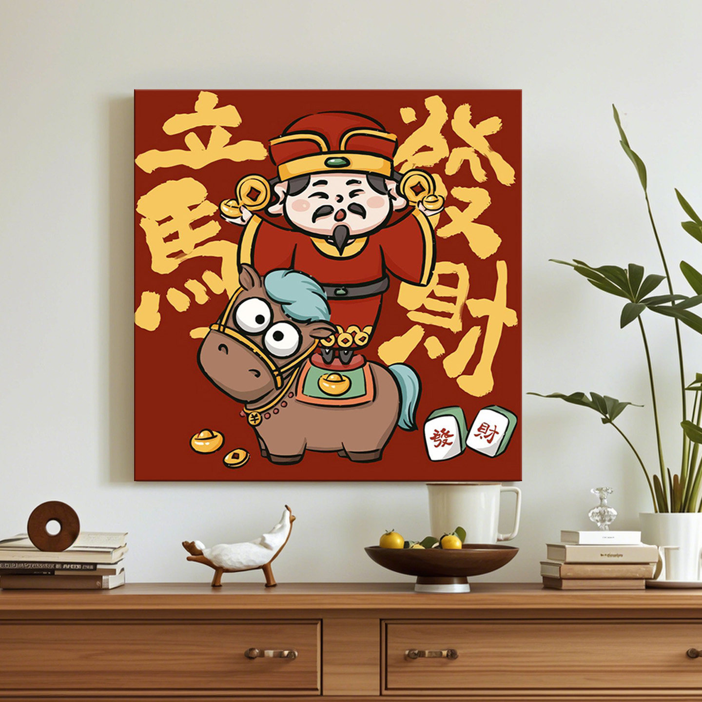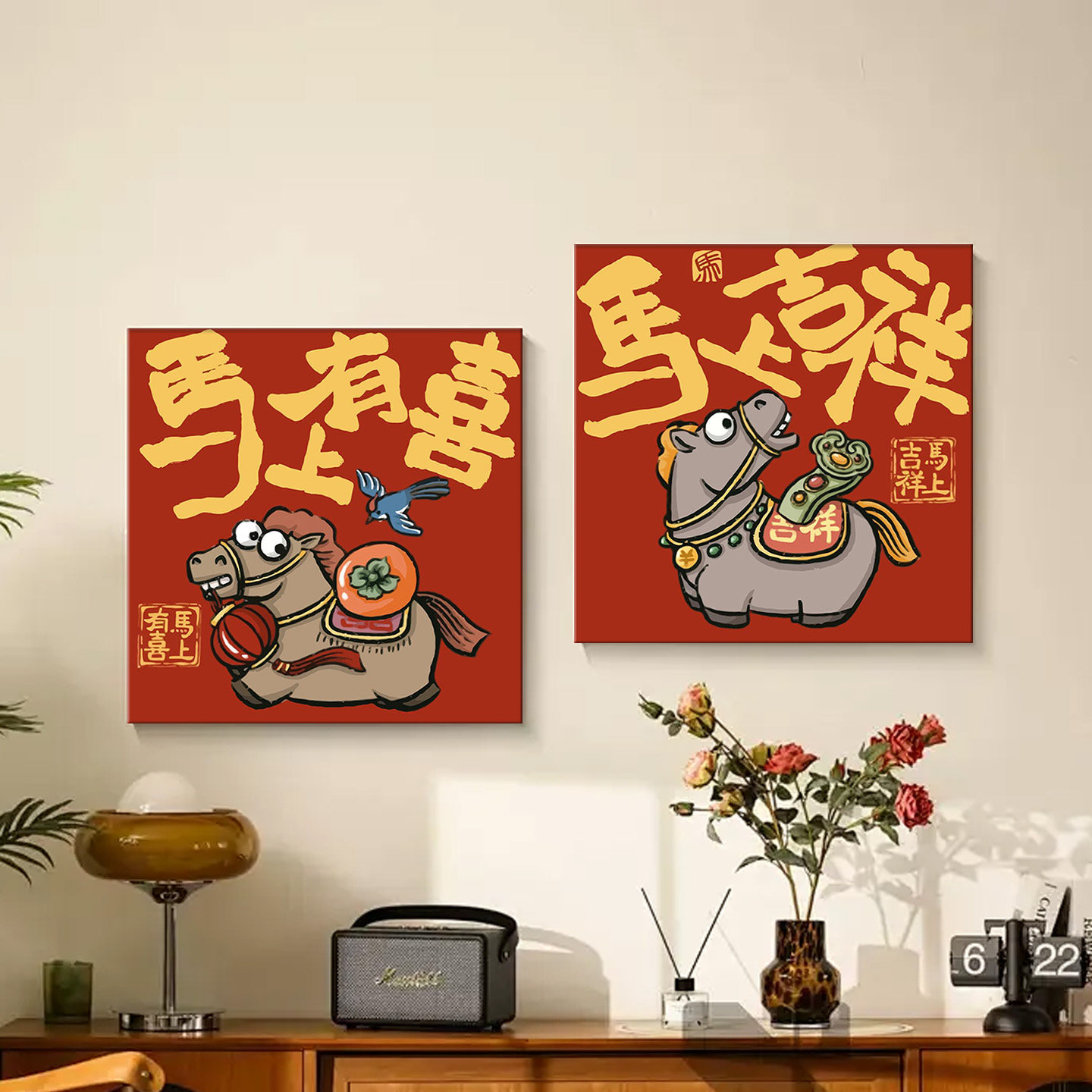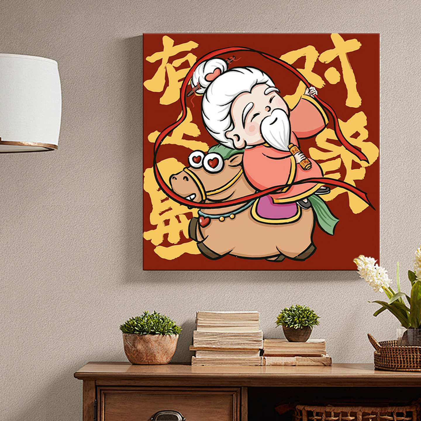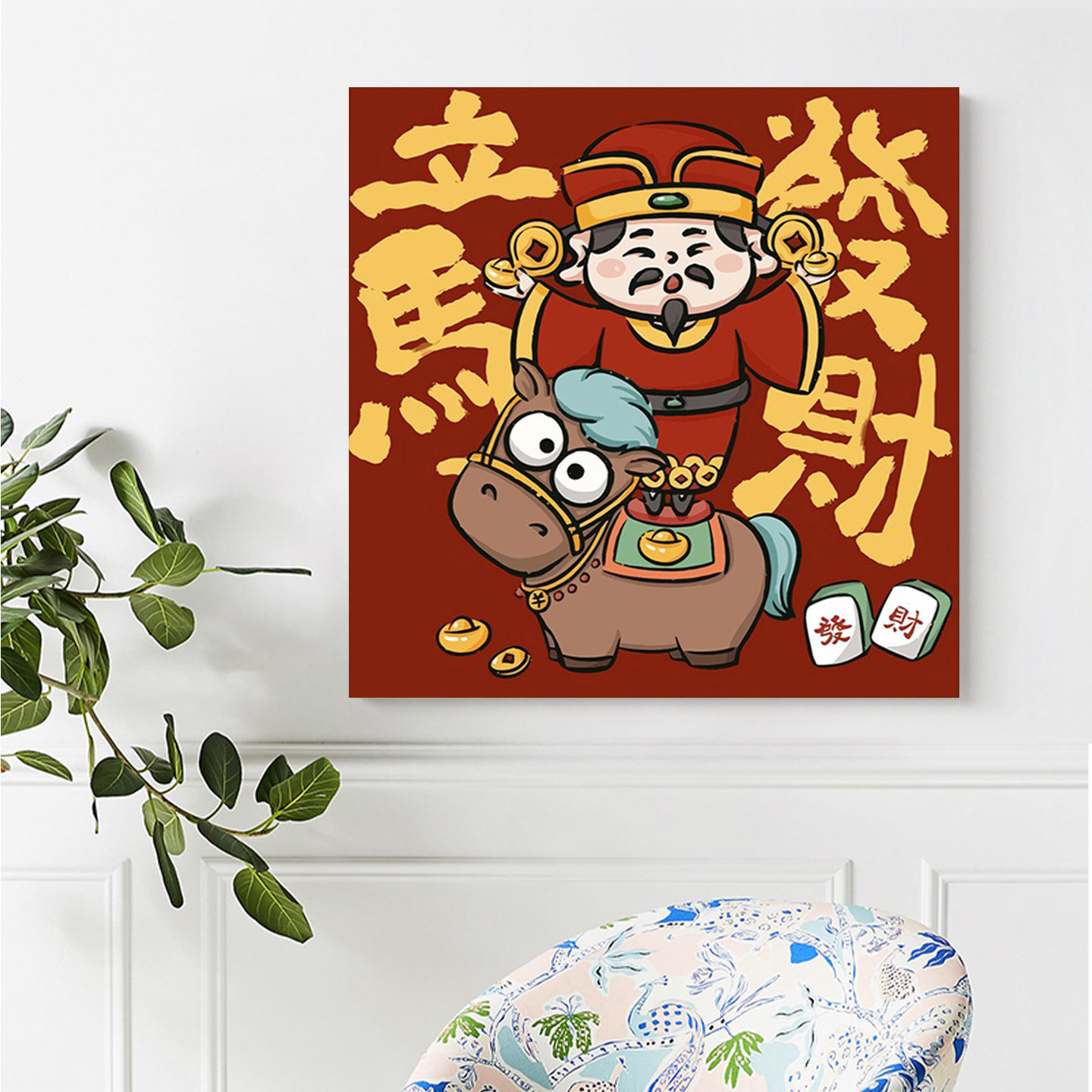 马年数字油画diy填色卡通儿童新年丙烯画涂色马上发财油彩画装饰