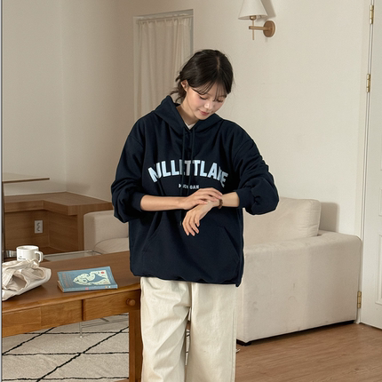 韩国代购大码女装2025靓丽秋装新款连帽抽绳宽松时尚休闲字母卫衣
