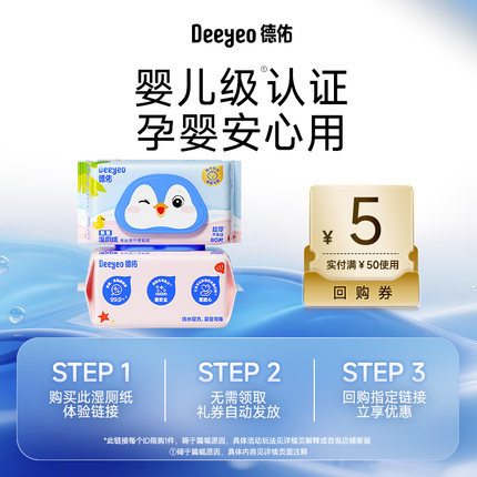 【天猫U先】德佑湿厕纸婴童孕妇宝宝家用纯水厕纸厕所湿纸巾80抽