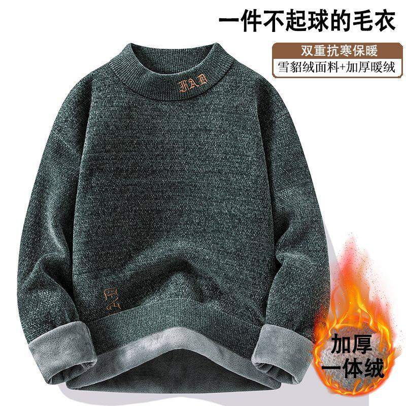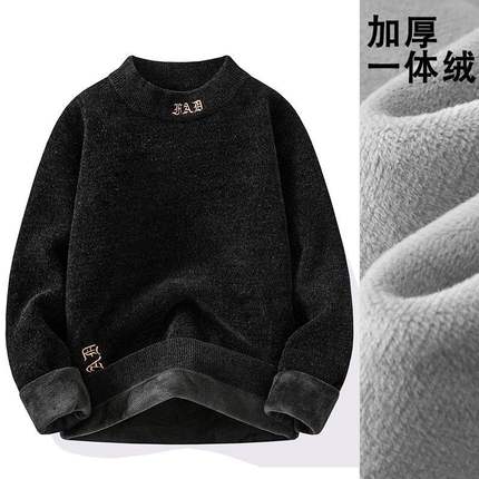 Yishion以纯官方时尚正品加绒毛衣男士秋冬新款加厚加绒保暖长袖