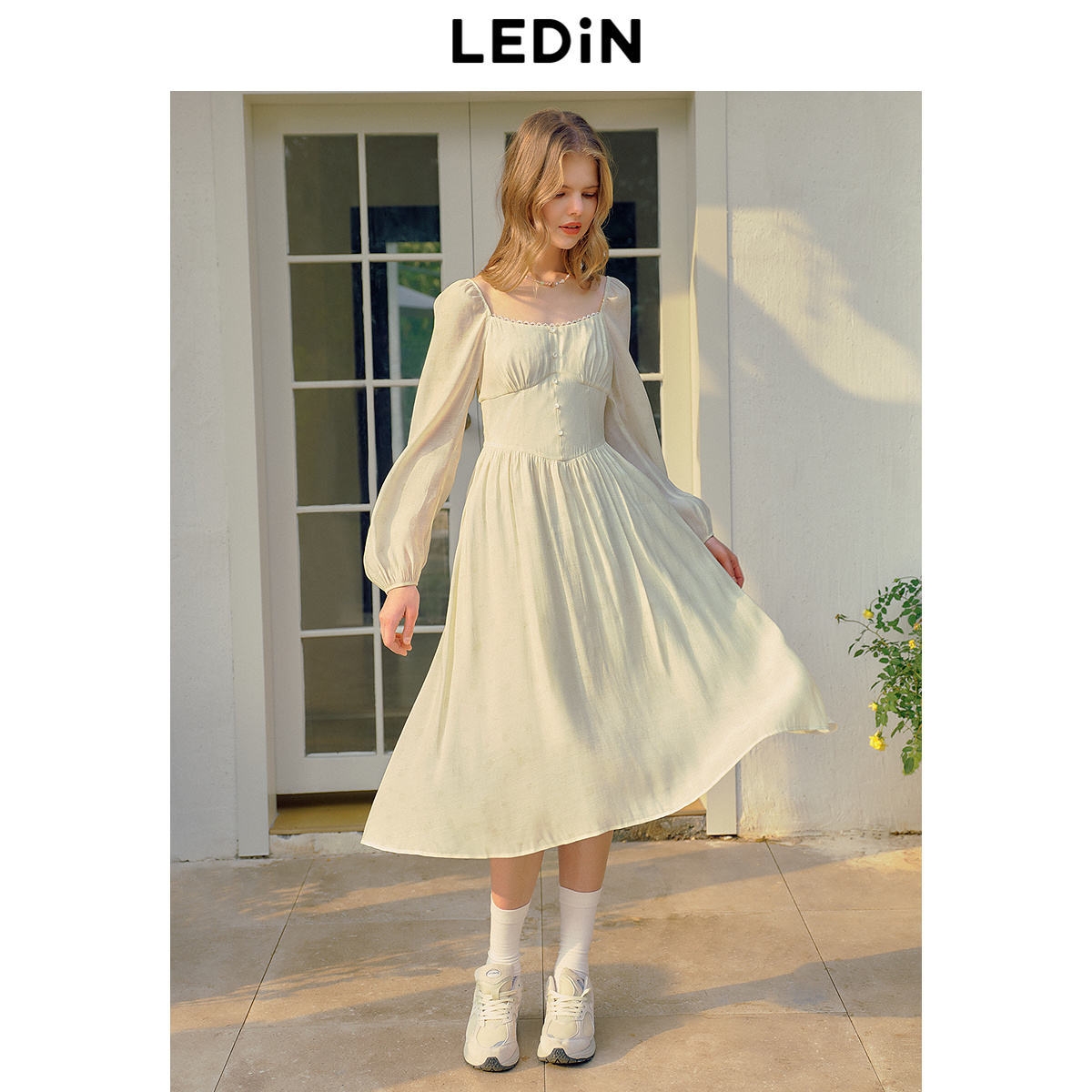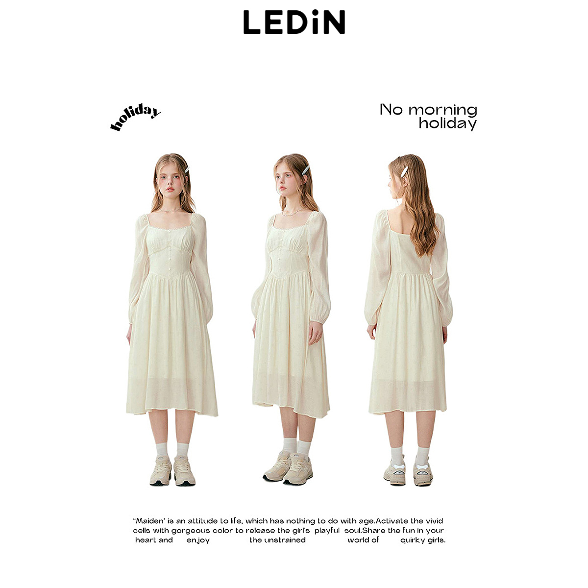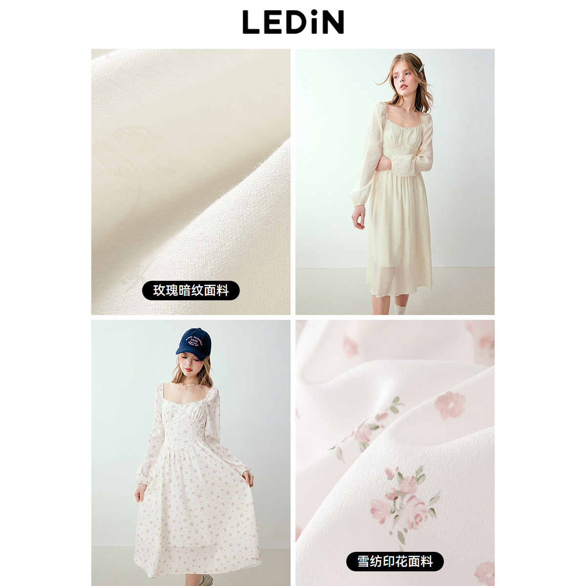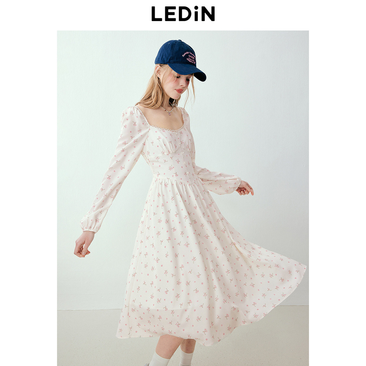 乐町收腰气质长袖连衣裙年春季新款度假打卡仙女裙碎花雪纺裙