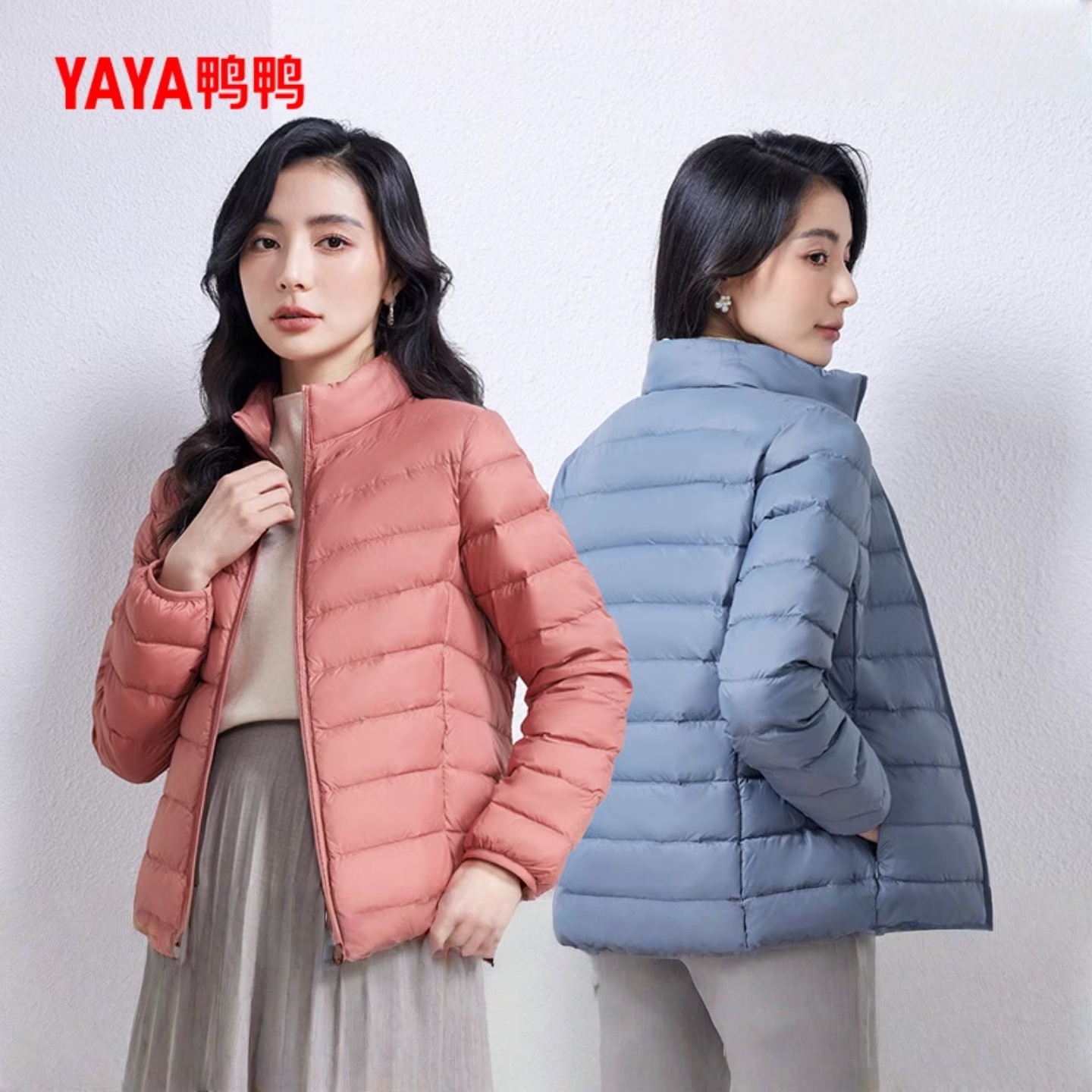 鸭鸭轻薄羽绒服女2025年立领修身