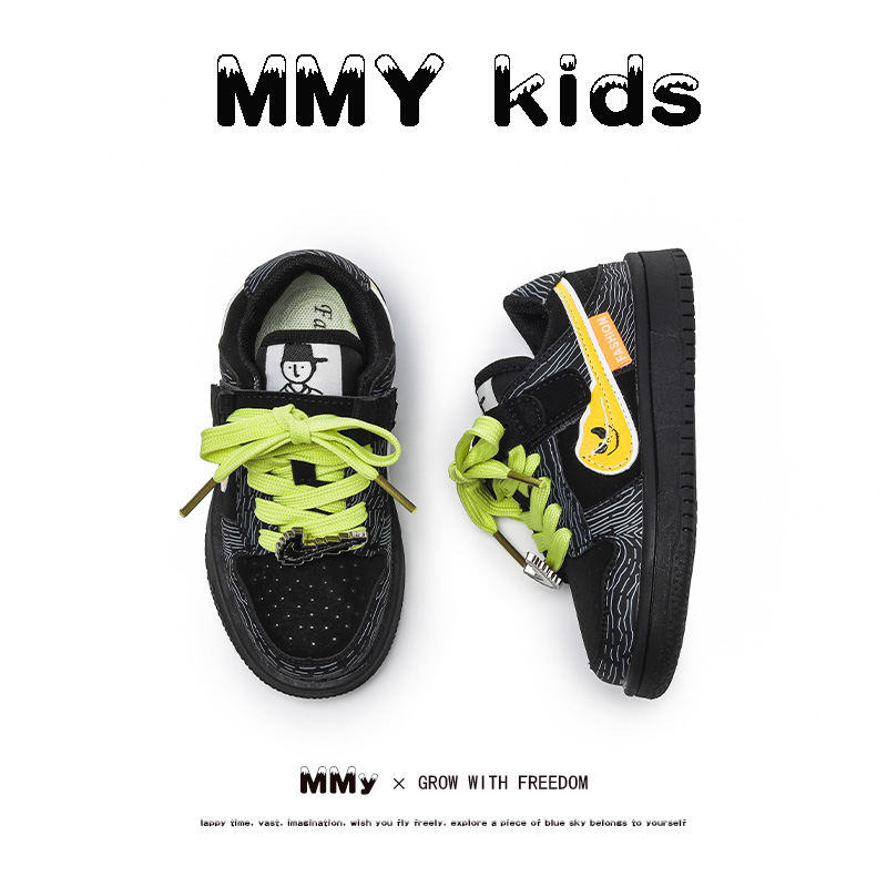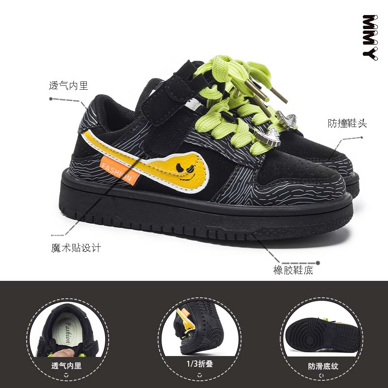 儿童aj板鞋男童运动鞋2025秋季新款黑色空军一号软底休闲女童鞋子